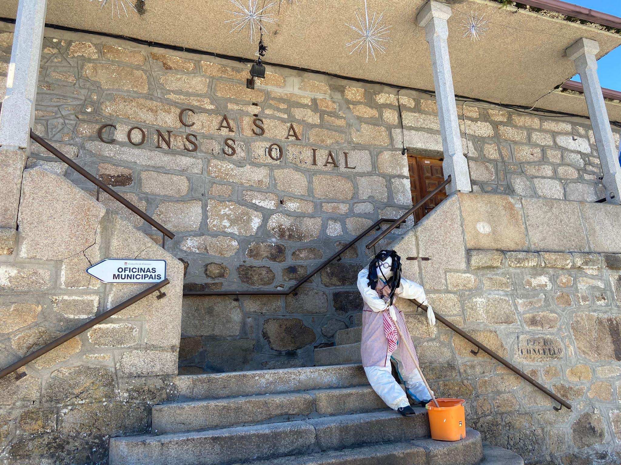 Consta que tem mais de mil habitantes, mas estranhamente, no Domingo de Carnaval, não nos cruzámos com quase nenhum. Tinham sido substituídos por estranhos seres com roupas de cores garridas, que se dedicavam a atividades específicas. Tivemos algum receio de circular entre eles, porque, apesar de até terem um ar simpático, estavam a administrar a oitava dose contra a covid com uma seringa de tamanho assustador.