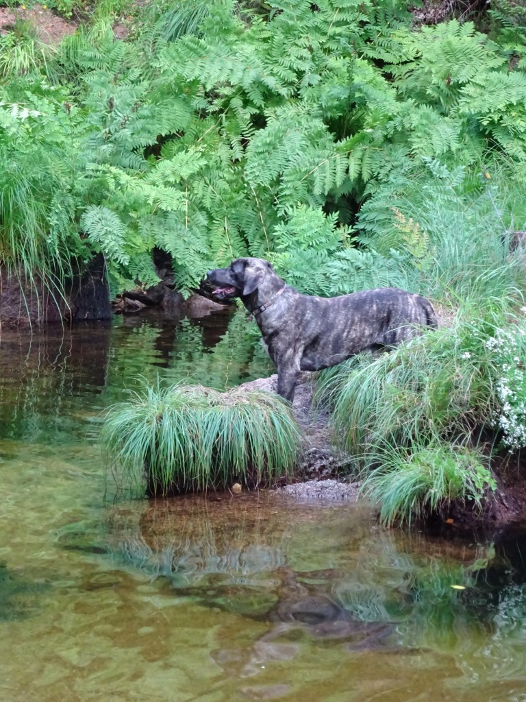 Quando o Gerês vai ao Gerês vê-se que está em casa, ou melhor, quase se deixa de ver, tal é o nível de camuflagem com a paisagem. Os passeios que fazemos pelos montes na sua companhia são uma alegria. Está sempre alerta, alguns metros à nossa frente, como que a garantir que o caminho está livre de perigos para avançarmos. Por vezes desata numa correria ziguezagueante atrás de algum pássaro ou então ladra, afugentando bicharocos que tanto gostaríamos de ver. Por cada quilómetro nosso, ele faz dois ou três, mas isso não o parece afetar. Basta o vislumbre de um corso e lá vai ele, mais rápido que o Bolt. Apenas os garranos lhe parecem impor algum respeito, já que avança fazendo de conta que não se passa nada. Lamento que as vacas o percecionem como lobo e fujam, porque ele está sempre pronto para brincar e correr com elas.