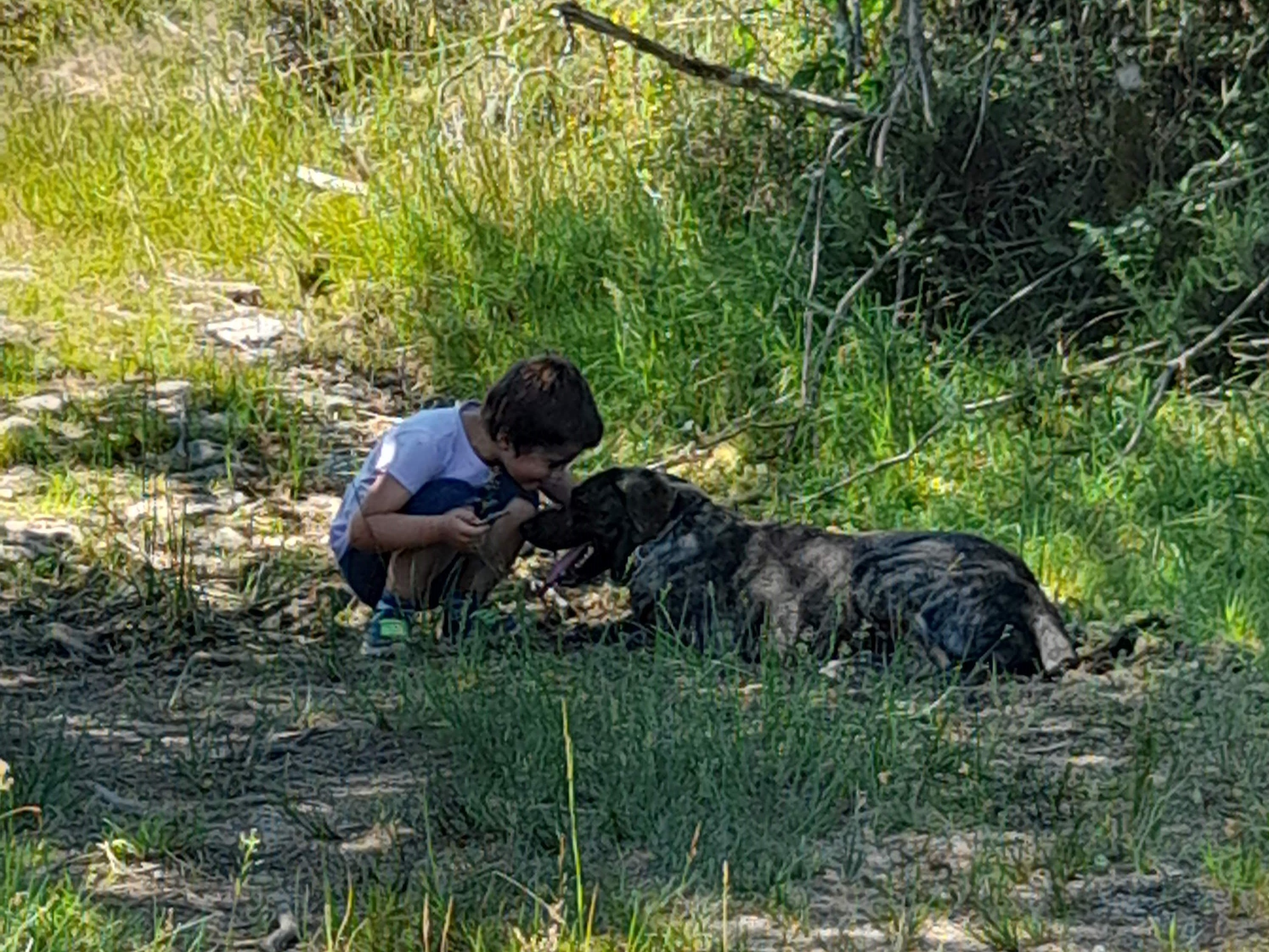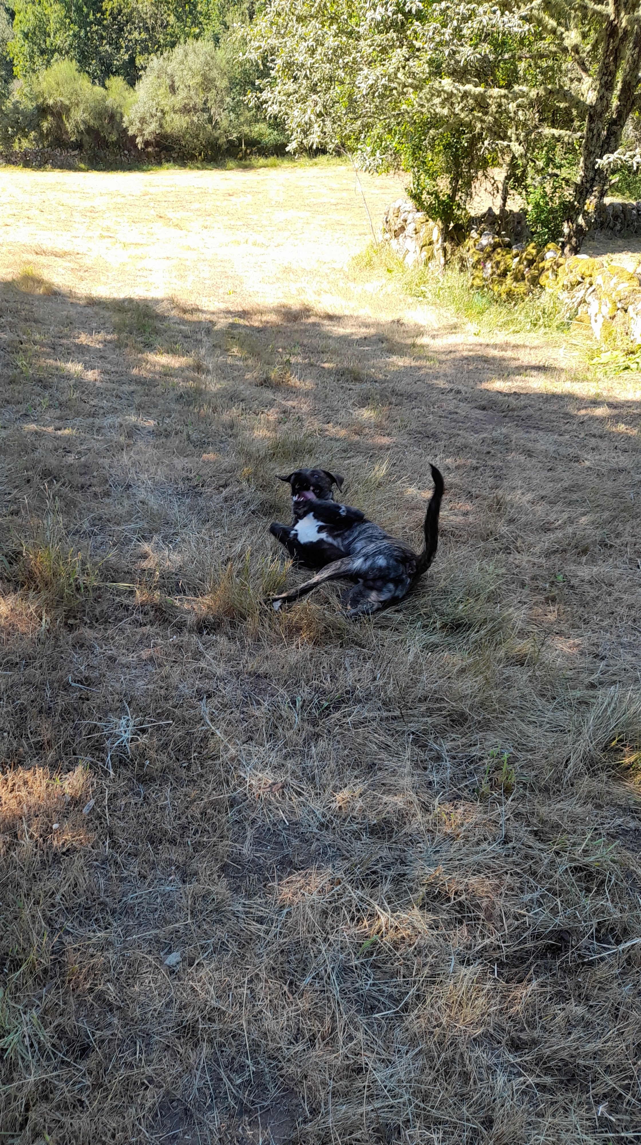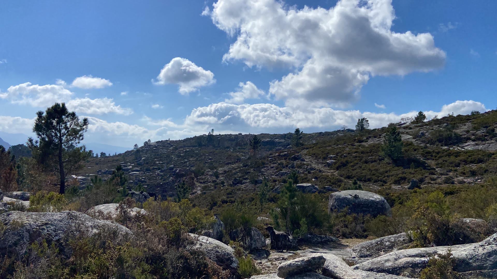 Quando o Gerês vai ao Gerês vê-se que está em casa, ou melhor, quase se deixa de ver, tal é o nível de camuflagem com a paisagem. Os passeios que fazemos pelos montes na sua companhia são uma alegria. Está sempre alerta, alguns metros à nossa frente, como que a garantir que o caminho está livre de perigos para avançarmos. Por vezes desata numa correria ziguezagueante atrás de algum pássaro ou então ladra, afugentando bicharocos que tanto gostaríamos de ver. Por cada quilómetro nosso, ele faz dois ou três, mas isso não o parece afetar. Basta o vislumbre de um corso e lá vai ele, mais rápido que o Bolt. Apenas os garranos lhe parecem impor algum respeito, já que avança fazendo de conta que não se passa nada. Lamento que as vacas o percecionem como lobo e fujam, porque ele está sempre pronto para brincar e correr com elas.
