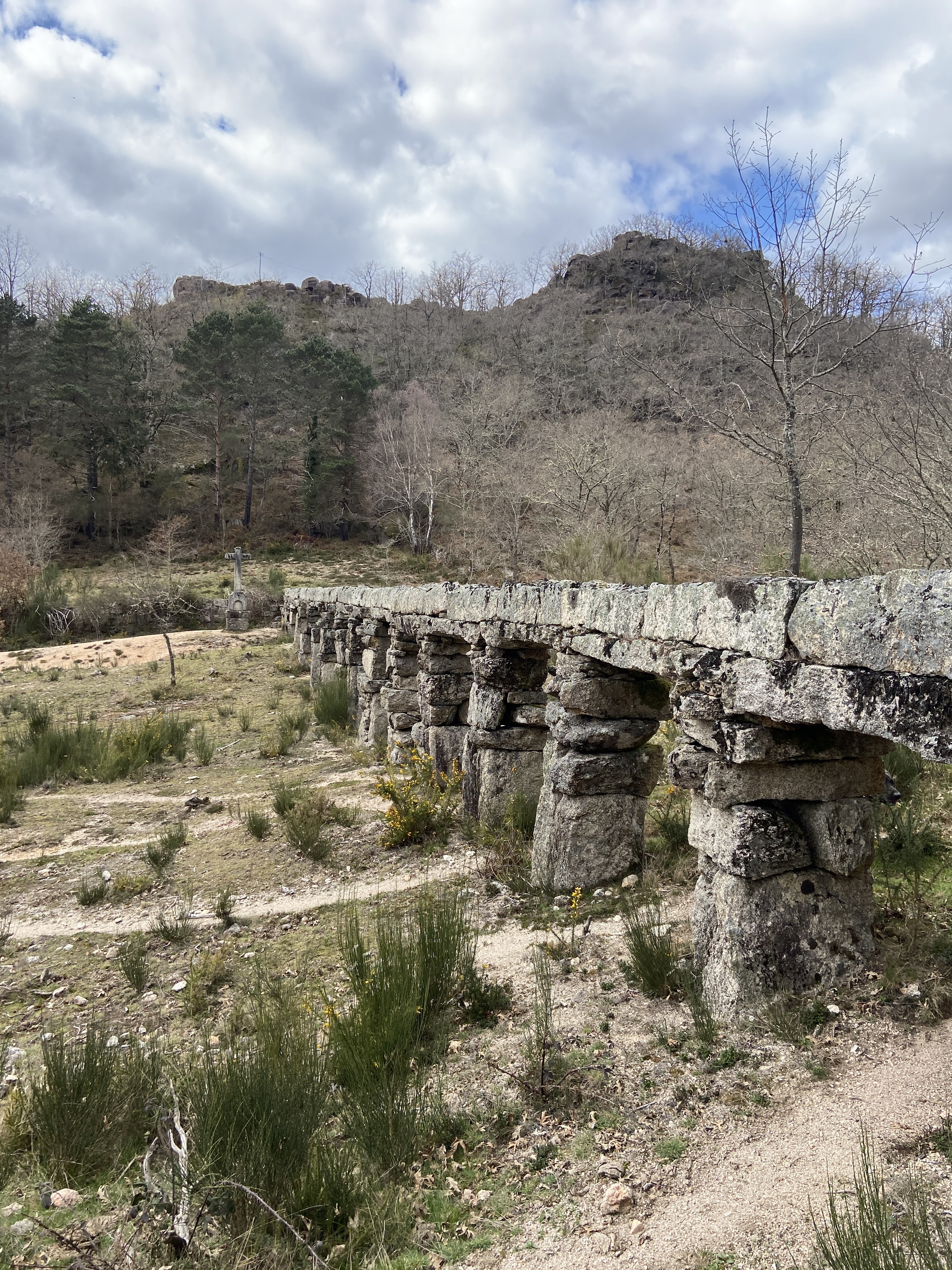 Depois de atravessar a Ponte do Contador, sobe-se até ao impressionante Aqueduto de Pontes, edificado em 1940 a mando do padre Manuel Joaquim Rodrigues. Esse aqueduto de rega com 60 metros de comprimento sobre 24 pilares de granito foi utilizado ao longo de meio século e mantém-se, como o seu cruzeiro, num impecável estado de conservação.