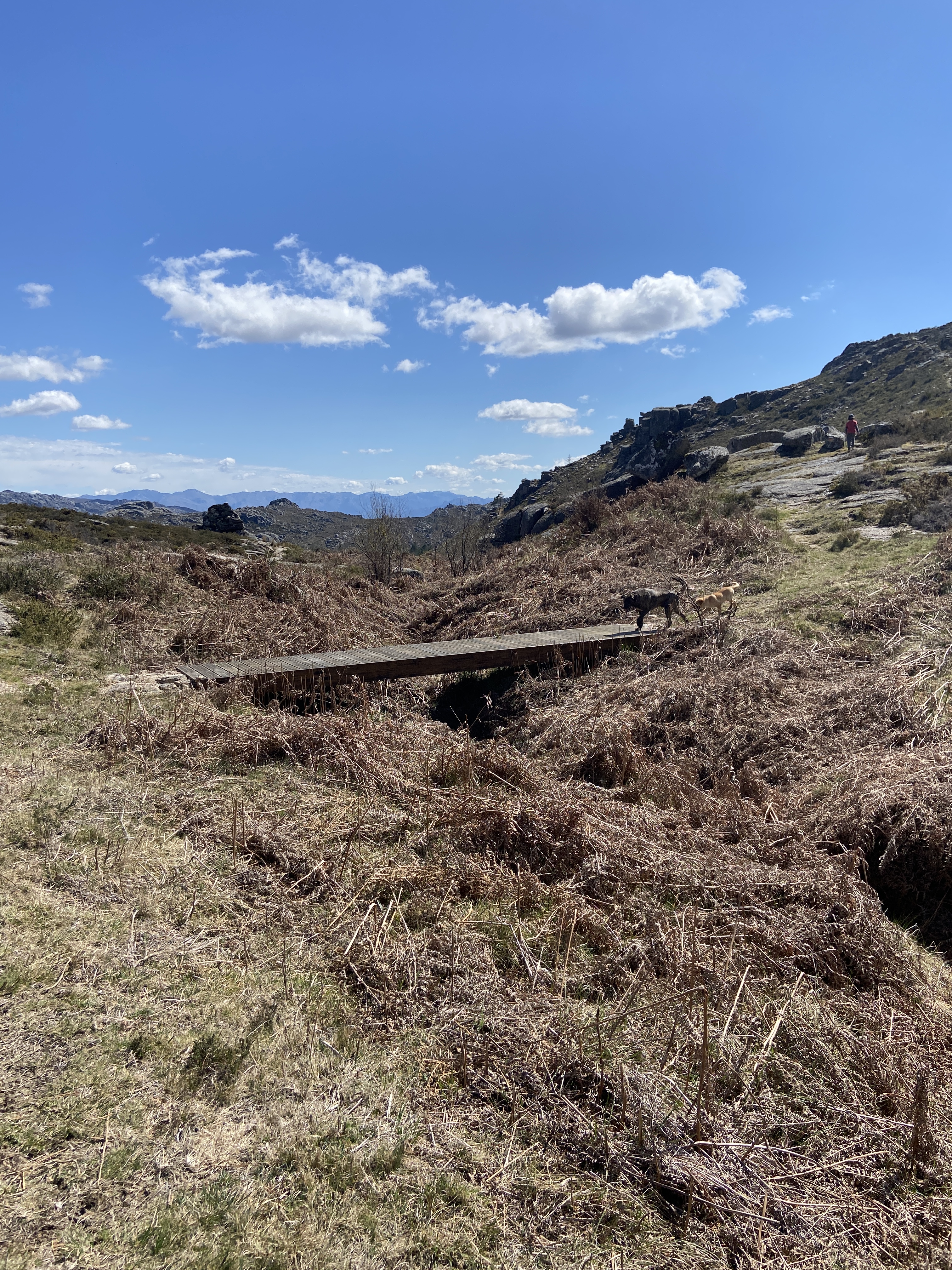Fica aqui uma suspeita: a de que será difícil, muito difícil, haver uma etapa mais bela na GR50 do que esta que liga Castro Laboreiro a Lamas de Mouro. O percurso começa praticamente nas traseiras do Hotel Castrum Villae, onde um caminho de terra rapidamente nos conduz a uma chã desprovida de árvores e com uma ampla visibilidade. É aí que se chega à bela e pequena Ponte da Veiga que, apesar de ter características românicas, terá sido construída no séc. XVI (a sua primeira menção por escrito data de 1758). Há uma superstição que lhe está ligada: a de se batizarem as crianças ainda no ventre das mães sob o seu arco de volta perfeita para não morrerem ao nascer. Convém não esquecer que, em Portugal, na primeira metade do séc. XX, se estima que mais do que uma em cada cem crianças morria até completar um ano de vida, o que explica a proliferação deste tipo de crendices, sobretudo em zonas pobres e isoladas com as da serra.