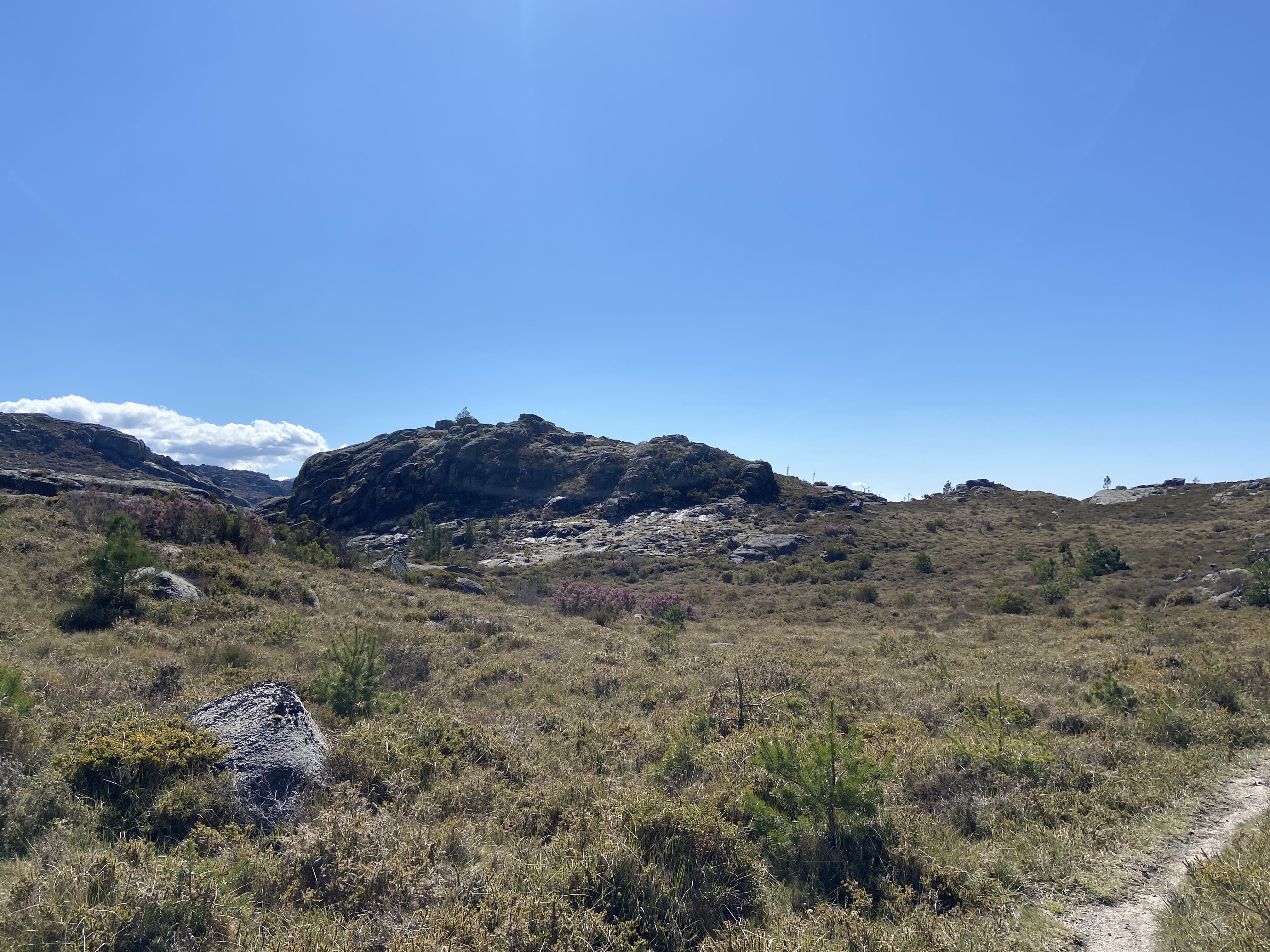 Depois de flectirmos para poente na Fraga da Franqueira, sobe-se até chegar a um magnífico bosque com carvalhos, pinheiros-silvestres e vidoeiros, que deve ser um importante local de abrigo para várias espécies do ecossistema. É um local mágico, apetece ficar lá horas. Tudo fervilha de tal forma de vida vegetal e animal que pensei logo em gravar um dia todos os ruídos ambientais que adensam o seu silêncio.