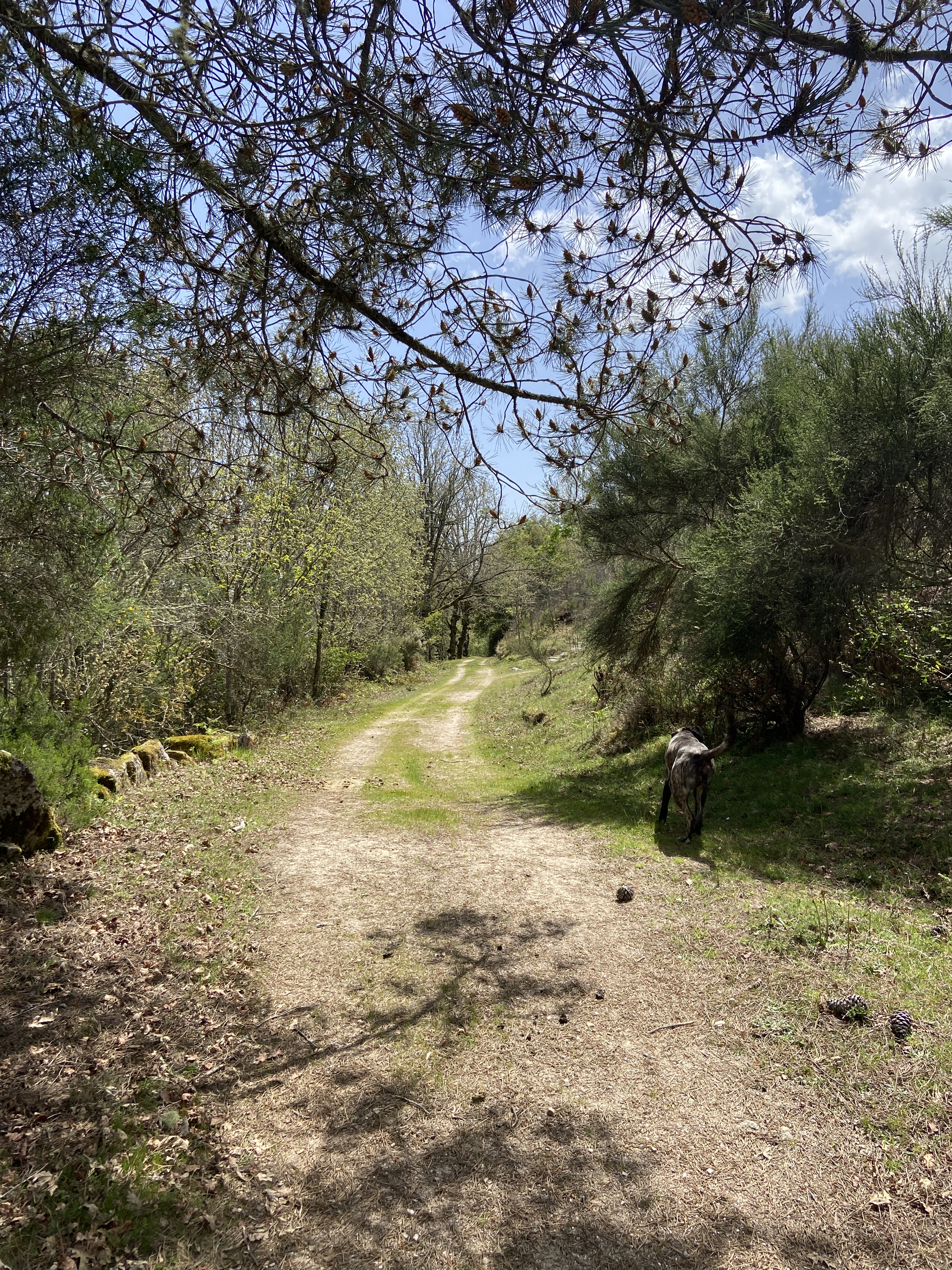 Houve uma altura em que tive de dar a mão à palmatória e voltar para trás (4km ao todo), pois o pequeno e os cães já estavam fartos de serem picados pelo mato sem qualquer garantia de chegarmos a bom-porto. Qualquer dia, volto lá. Estou convencido que aquele caminho de vacas também pode ser caminho de gente.