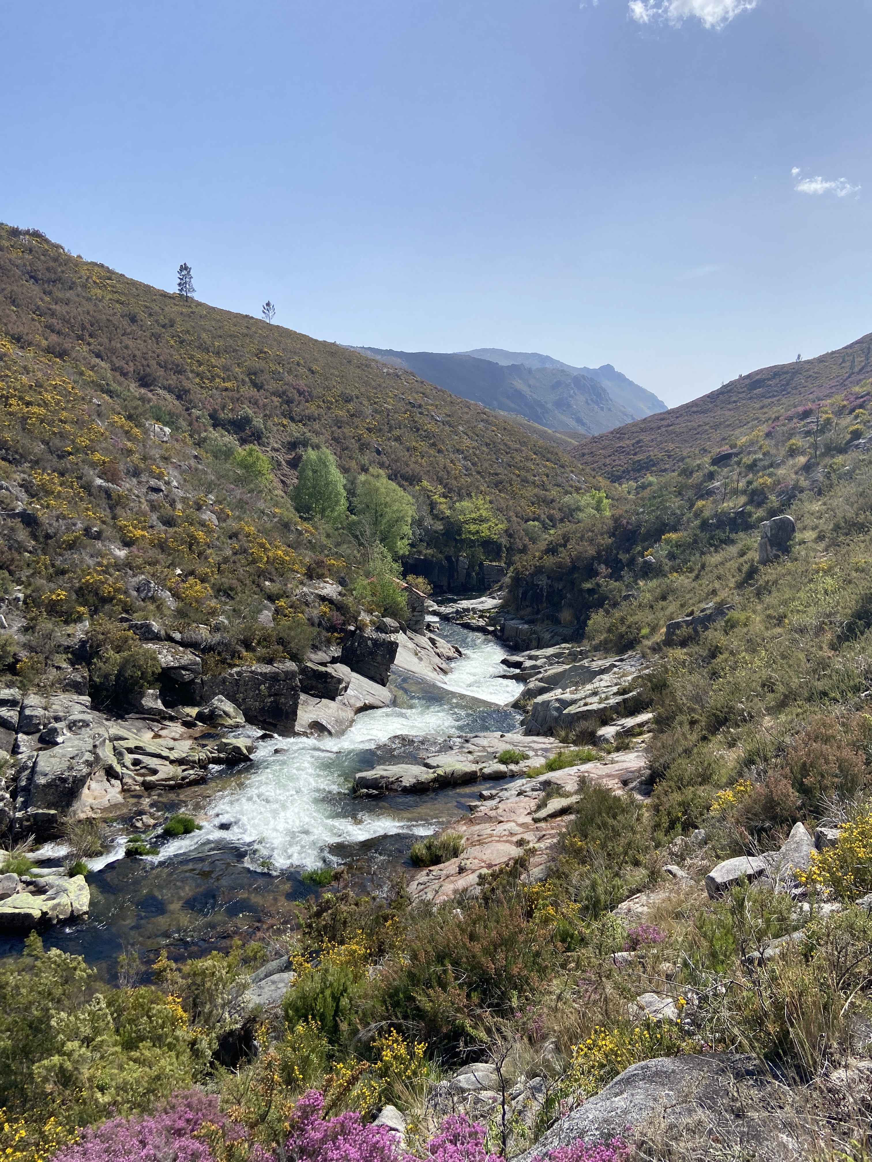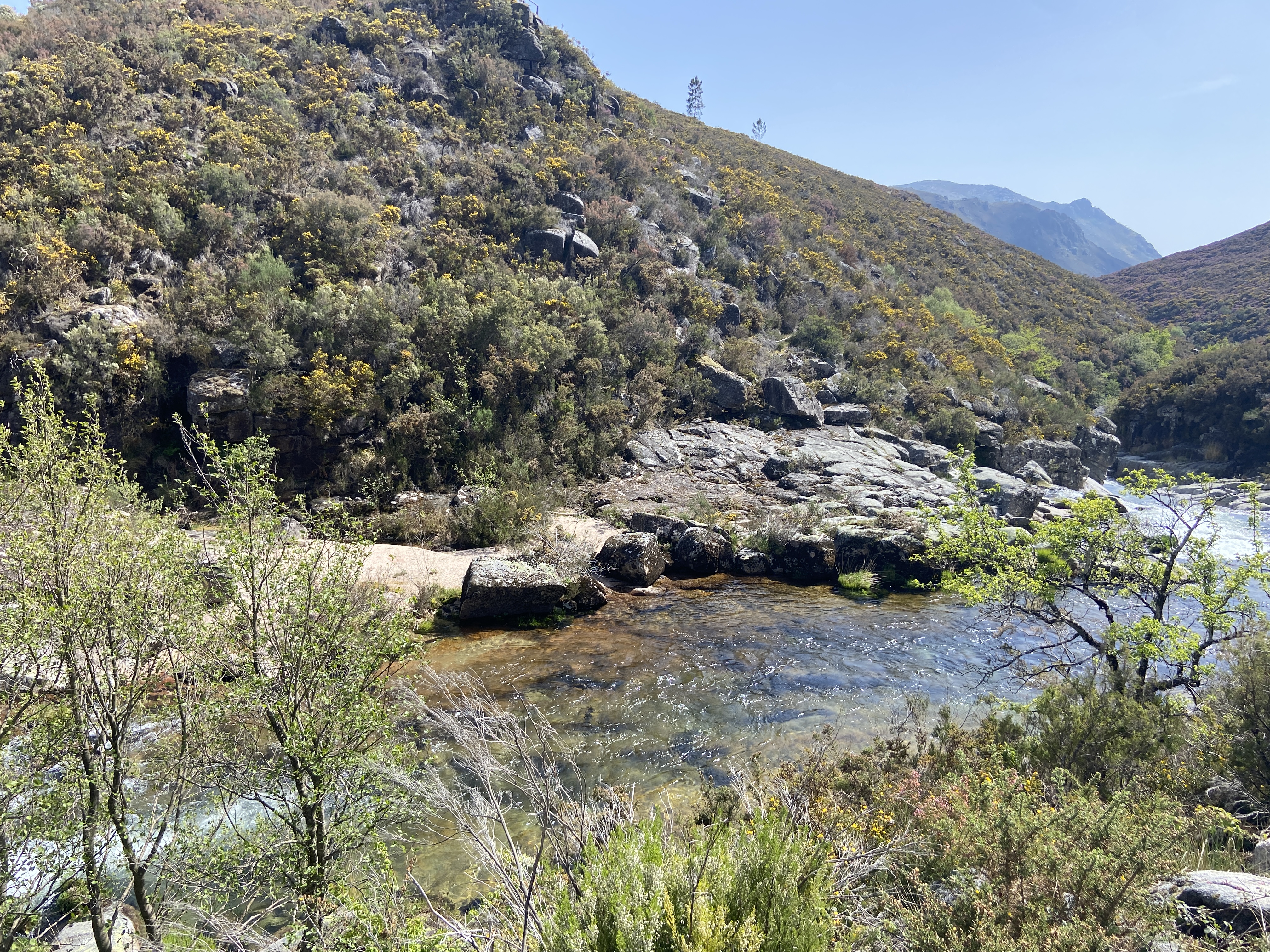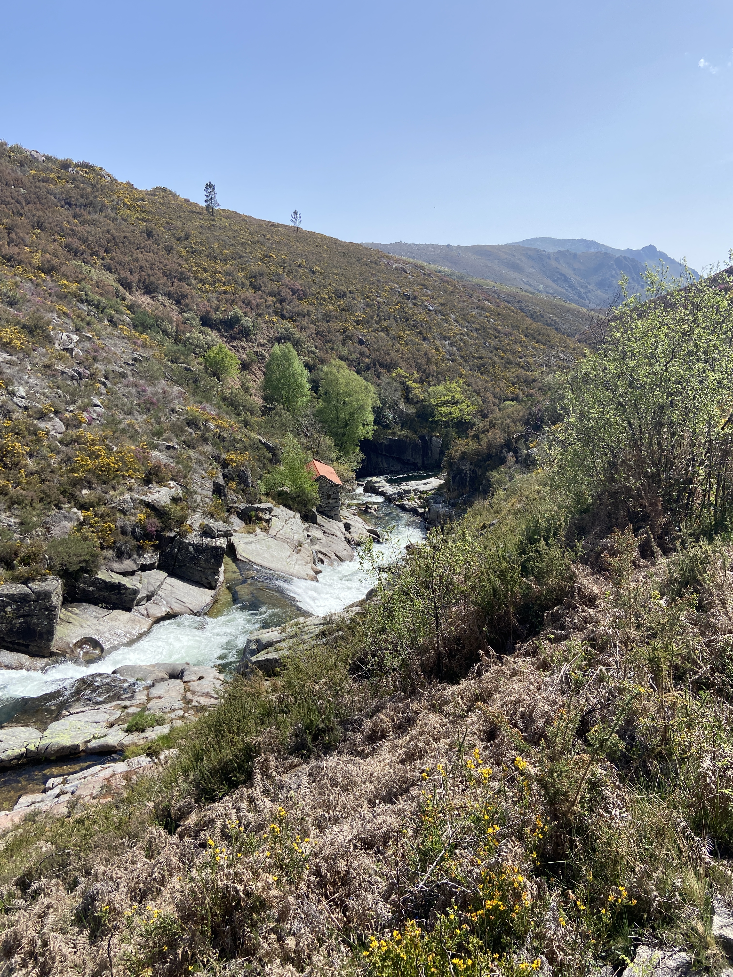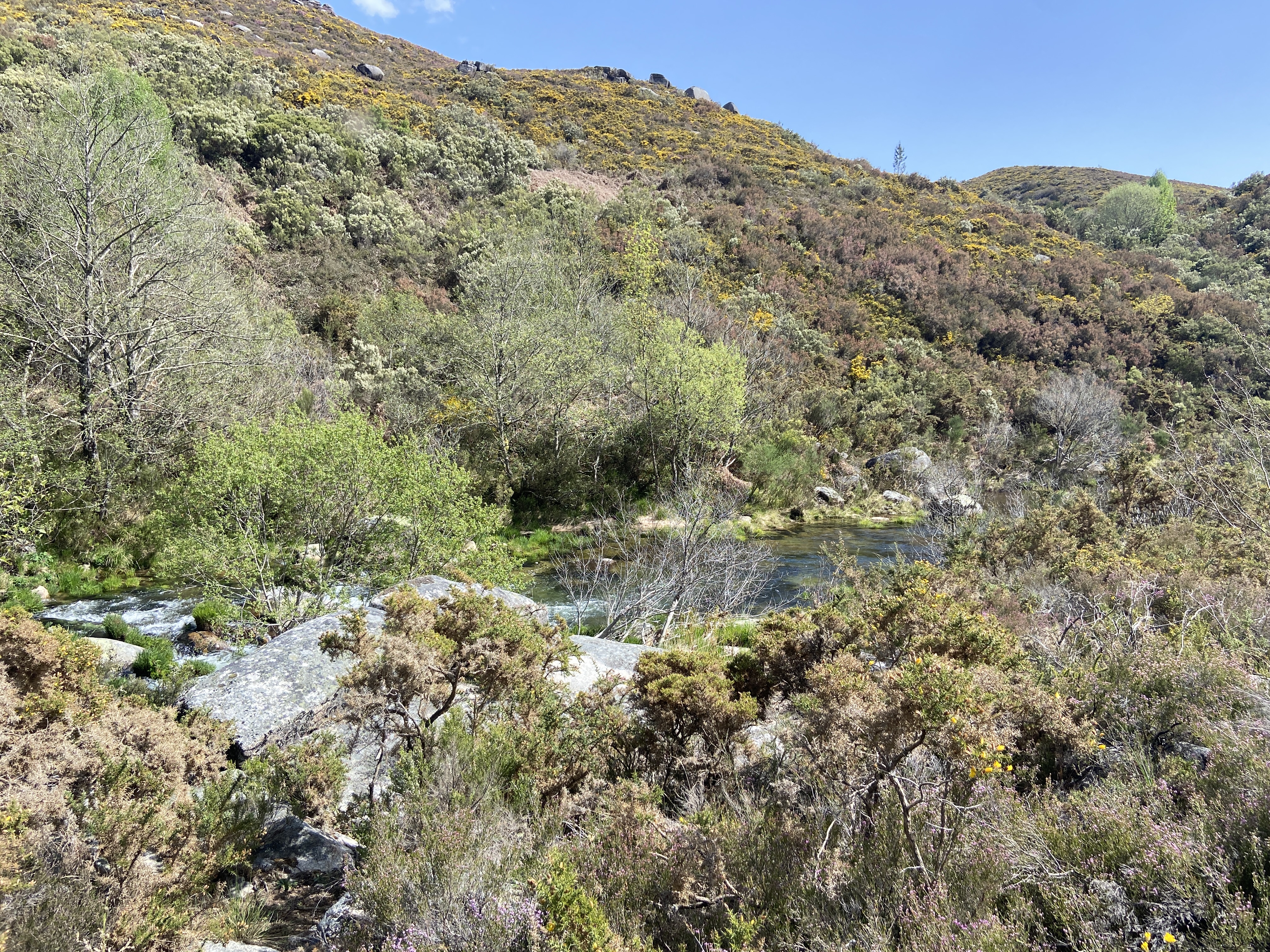 Como seria de esperar, perdemos-nos, sobretudo porque optámos sempre por seguir pelo caminho mais a nascente (e próximo do rio) nas três bifurcações que nos surgiram logo no início do trilho. Acabámos, no entanto, por conseguir algo que não fazia parte dos planos: ver, do lado português, o moinho da Casa do Frade que descobrimos há semanas na Rota do Pão. Tudo isto porque teimámos em singrar ao longo de um valente quilómetro por um caminho de vacas muito fechado e atribulado junto ao rio, numa zona que alterna rápidos e cascatas com poças que são óptimas para tomar banho (deu para molhar os pés, não obstante o facto da água estar gelada).