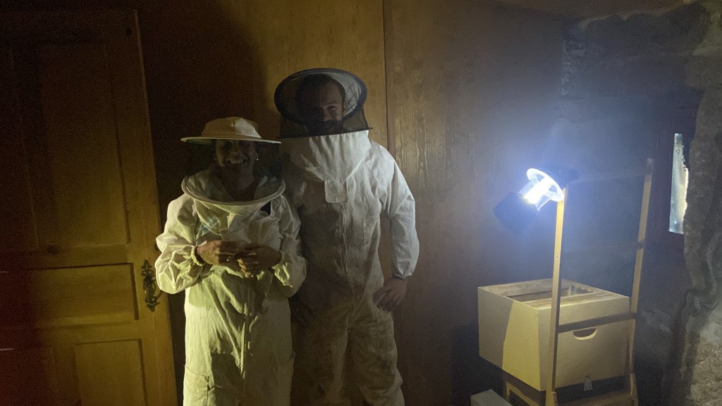 Depois de pormos de parte o Plano A (eles ficarem com a colmeia, pois as abelhas não aguentariam a viagem até Terras de Bouro), rapidamente engendrámos um plano B: eles vender-nos-iam uma caixa e ficaríamos nós com a colmeia. A nossa tímida hesitação desapareceu por completo quando o João e a Maria José nos ofereceram os seus serviços de consultoria para a nossa futura ocupação em part-time.