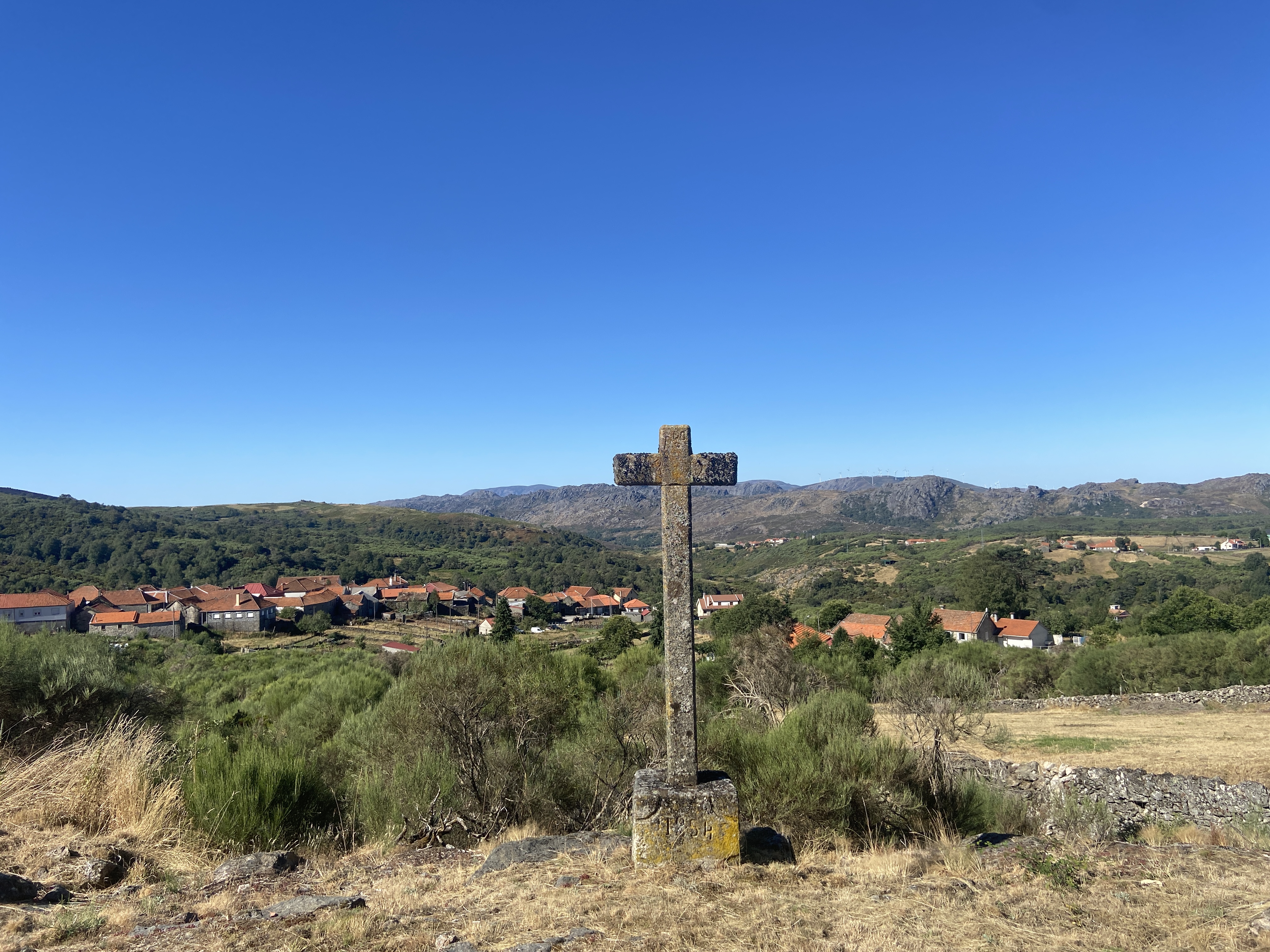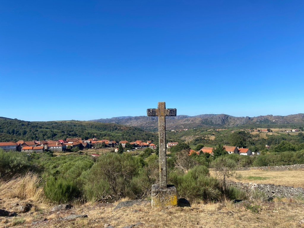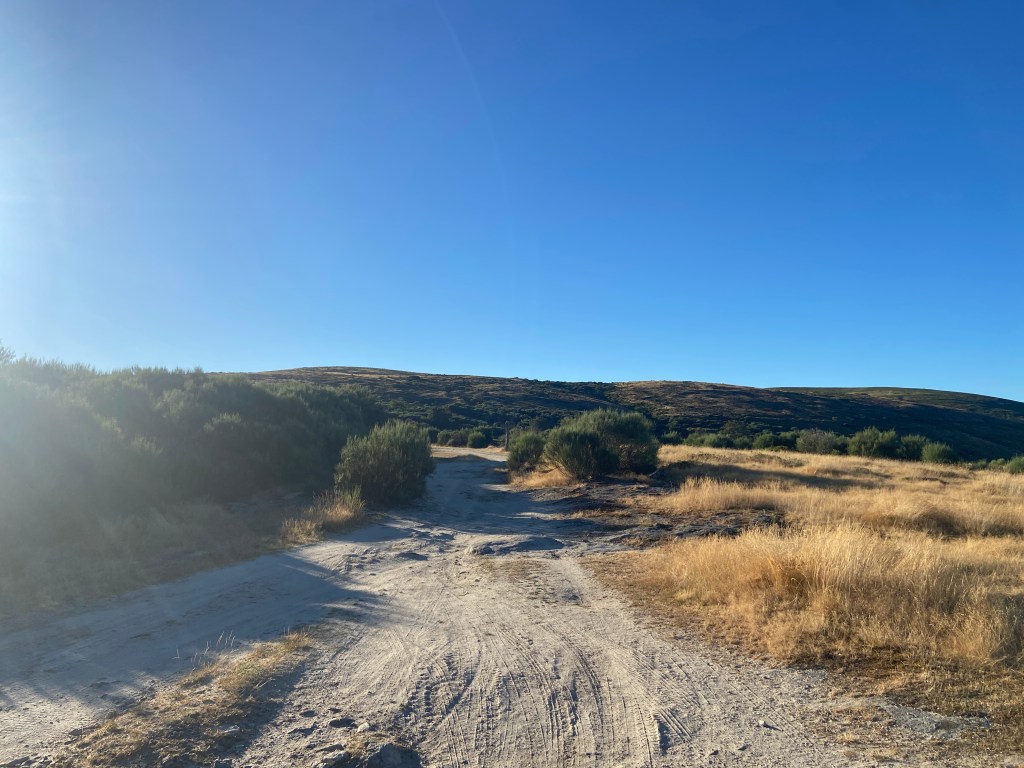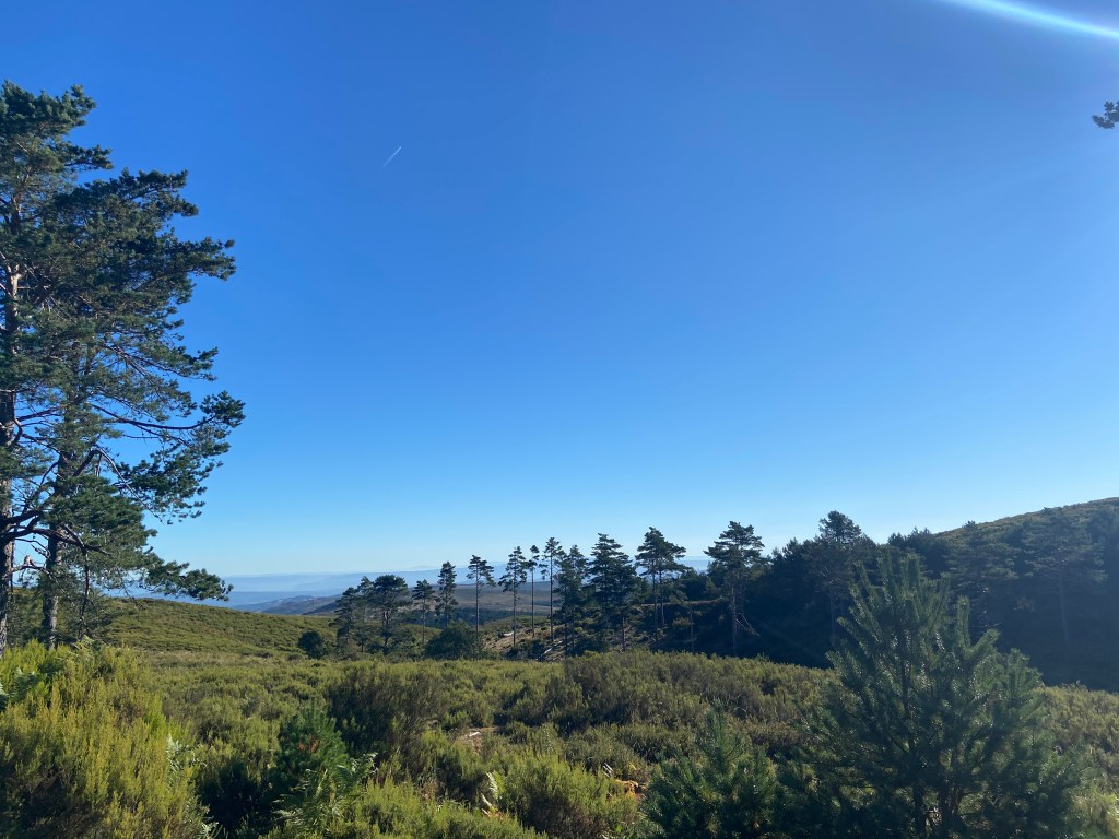 Poucos dias depois, o Frederico e eu pegámos novamente nos cães e fizemos a correr o mesmo percurso de ida só que, em vez de regressar a Portos, prosseguimos até à belíssima aldeia do Rodeiro (onde o resto da comitiva nos foi depois buscar de carro). Pelas minhas contas, tal aventura daria algo perto dos 18km e, na verdade, não fiquei longe de acertar: eram afinal 17km (ou 16 se o percurso não incluir desvios para ir espreitar as mamoas). Cruzámo-nos com gado vasto, imensos cavalos garranos, águias e peneireiros. Todo o esforço da corrida foi compensado pela imensa alegria que sentimos por ter a sorte de percorrer o misterioso estradão de terra repleto de bifurcações para o desconhecido. O terreno é óptimo para correr e apenas os primeiros quilómetros é que sobem bastante: depois a altitude estabiliza nos 1300m antes de descer, mesmo no final, para o Rodeiro. A nascente, temos constantemente o planalto galego e, a poente, o omnipresente marco geodésico do Alto do Giestoso.
