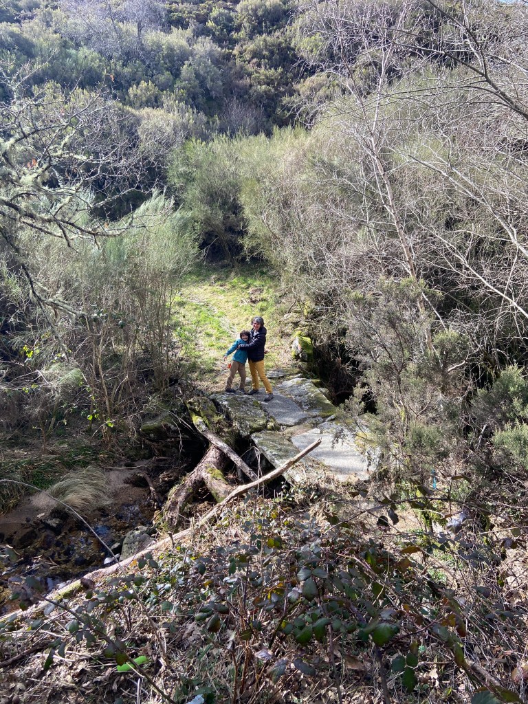 Acabámos também por descer até uma pequena ponte de pedra sobre um ribeiro e, de lá, avistámos um trilho bem assinalado que, desconfiei logo, nos levaria até ao nosso bem-conhecido estradão que une Cainheiras à Senhora do Numão. Fiz esses 3km com o filhote, maravilhados com a paisagem e os lírios do Gerês que despontavam pelo caminho. A Manela e o resto da famelga foram depois ter connosco de carro, numa sincronização de esforços digna de nota.