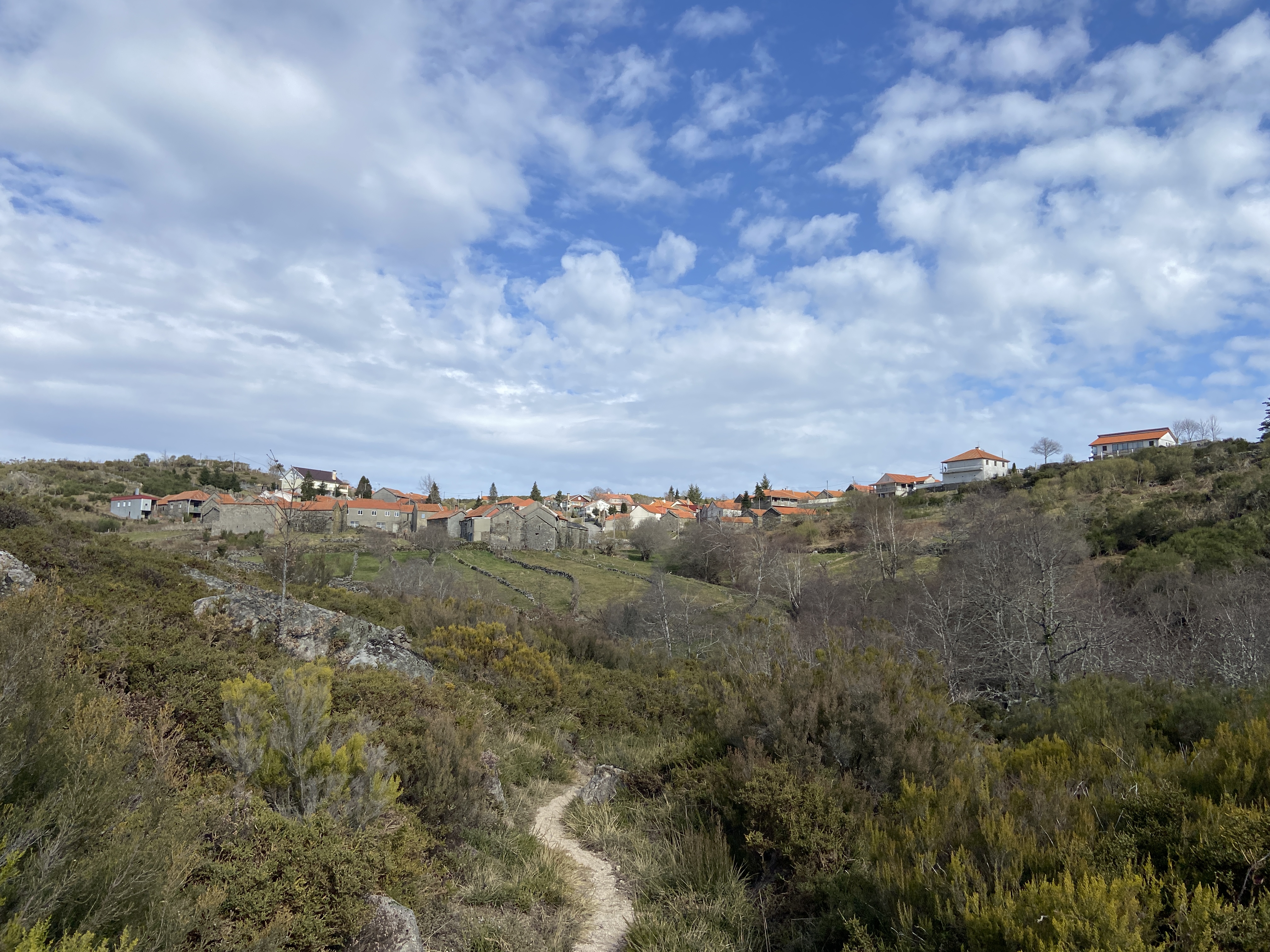 Acabámos também por descer até uma pequena ponte de pedra sobre um ribeiro e, de lá, avistámos um trilho bem assinalado que, desconfiei logo, nos levaria até ao nosso bem-conhecido estradão que une Cainheiras à Senhora do Numão. Fiz esses 3km com o filhote, maravilhados com a paisagem e os lírios do Gerês que despontavam pelo caminho. A Manela e o resto da famelga foram depois ter connosco de carro, numa sincronização de esforços digna de nota.