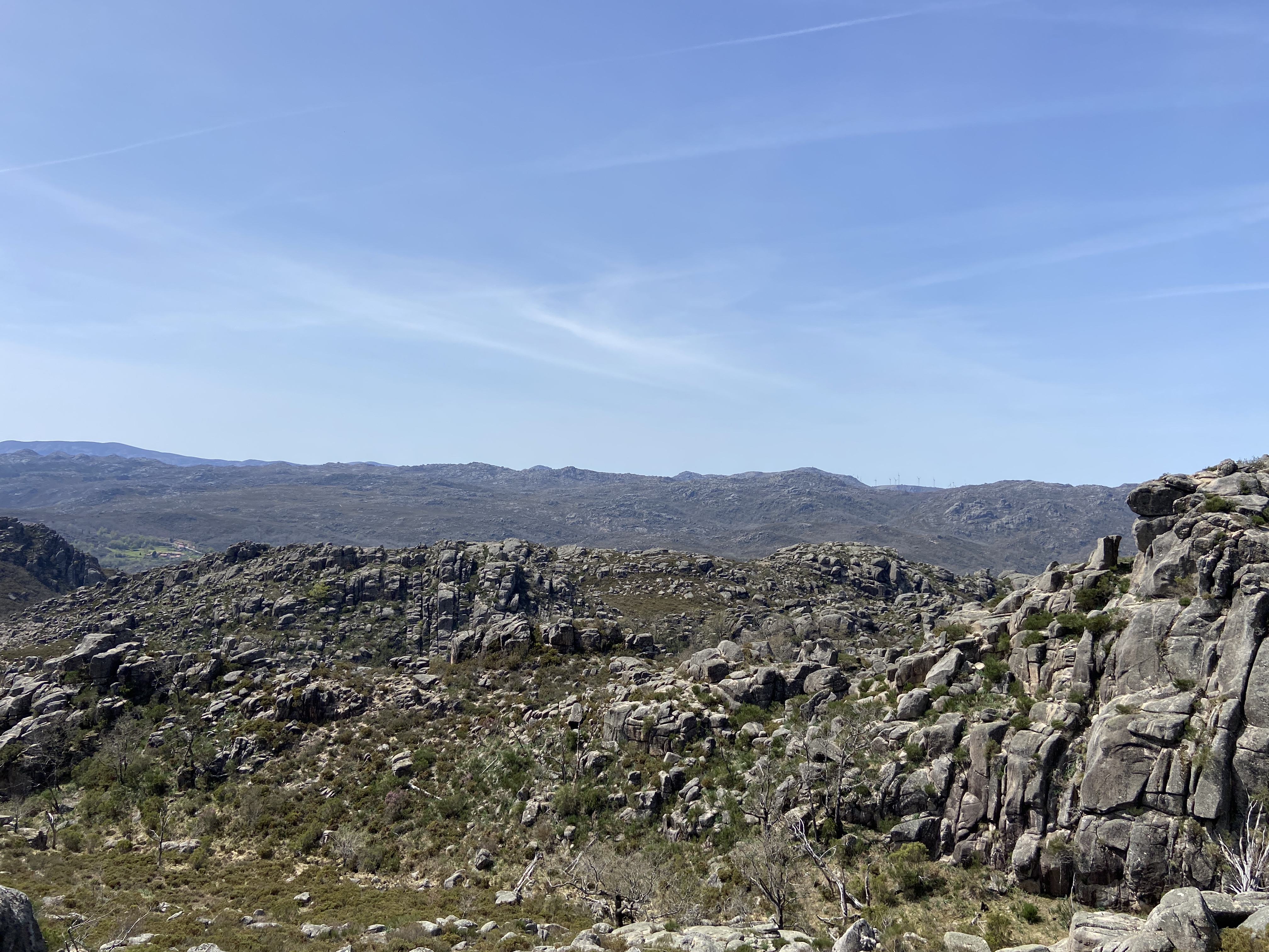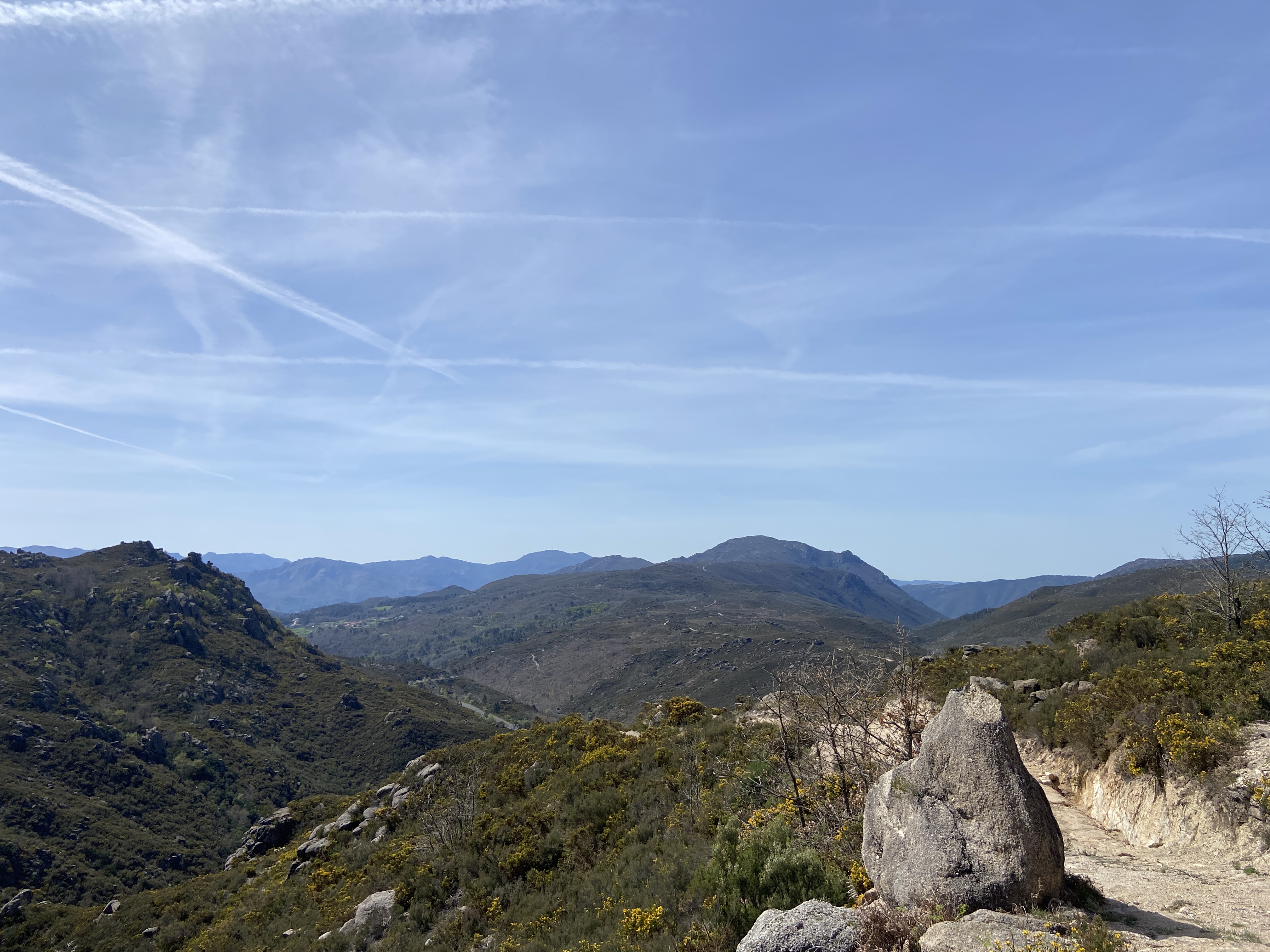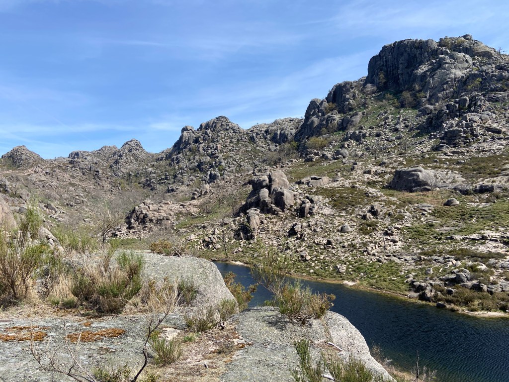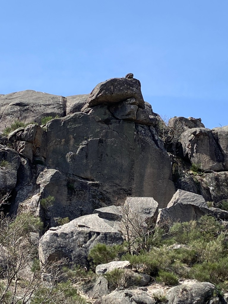 Em primeiro lugar, porque há uma tendência natural para olhar para o traçado de um trilho de forma anacrónica. Lá por alguém ter conseguido fazer o percurso a pé em 2013 não significa que seja possível fazer o mesmo dez anos depois. E, de facto, o caminho estava fechadíssimo com urze até à cintura, giestas afiadas e rochas tão íngremes que nos forçaram a improvisar quando nos dávamos conta que o percurso original se tornara impraticável.