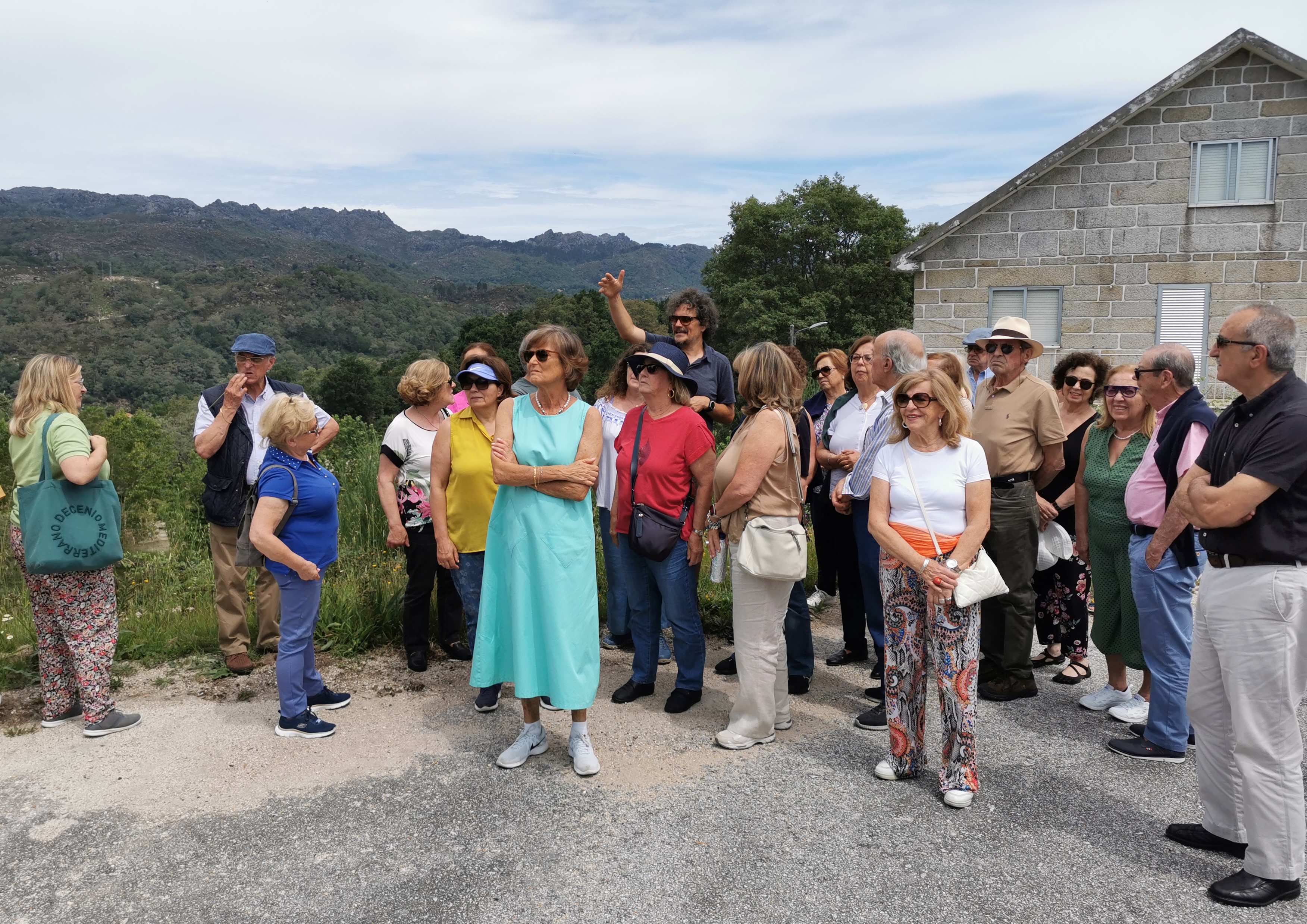 Na passada sexta-feira, a mais fina nata dos frequentadores da Foz do Porto esteve em Castro. Apesar de apenas metade do programa ter sido cumprido (fomos a Portos, à vila e à Entalada), foi uma grande alegria para toda a família ter recebido os meus alunos do Instituto Sénior da Foz (mais alguns outros colegas e familiares) na Serra do Laboreiro e, em particular, no nosso humilde abrigo castrejo. O Joãozinho esteve um verdadeiro cicerone, sempre bem-disposto e comunicativo, muito orgulhoso por poder mostrar a todos aquilo que acredito ele começar a sentir ser também a sua terra. A Manela foi o destino de todos os elogios, o que apenas demonstra que a visão e o juízo crítico se deterioram com a idade.