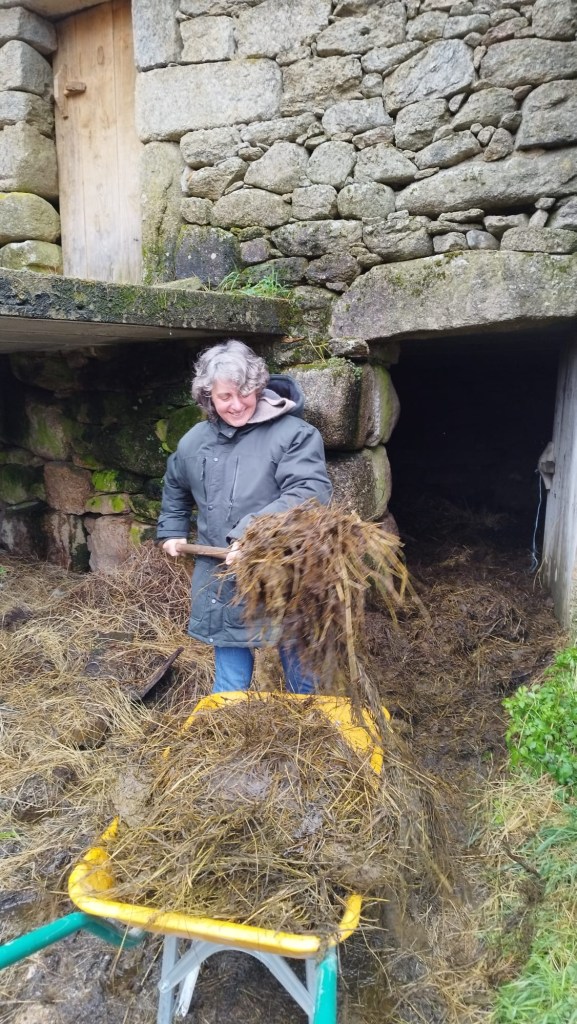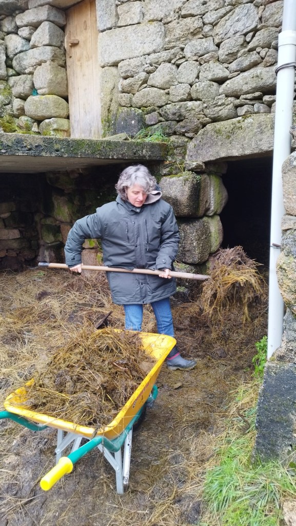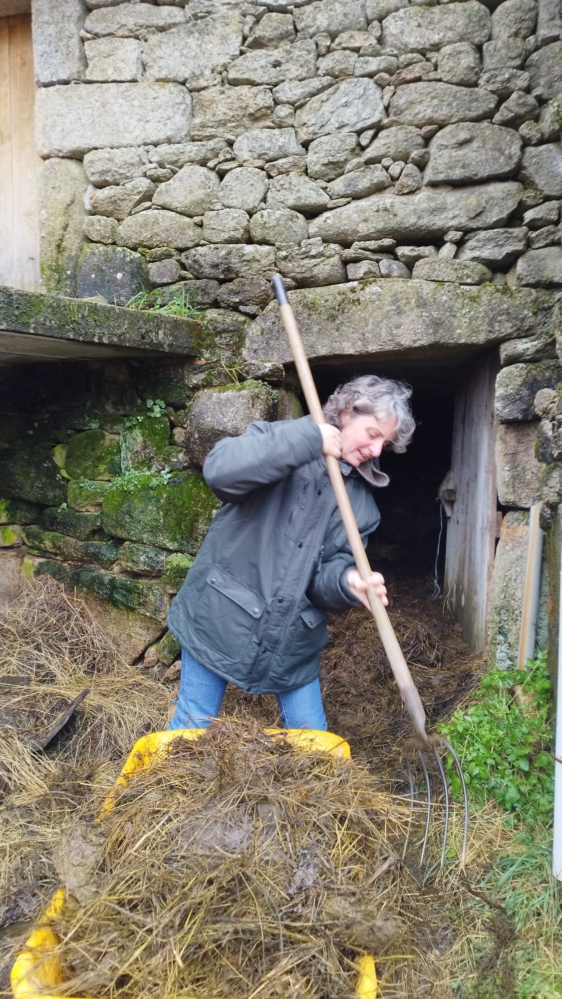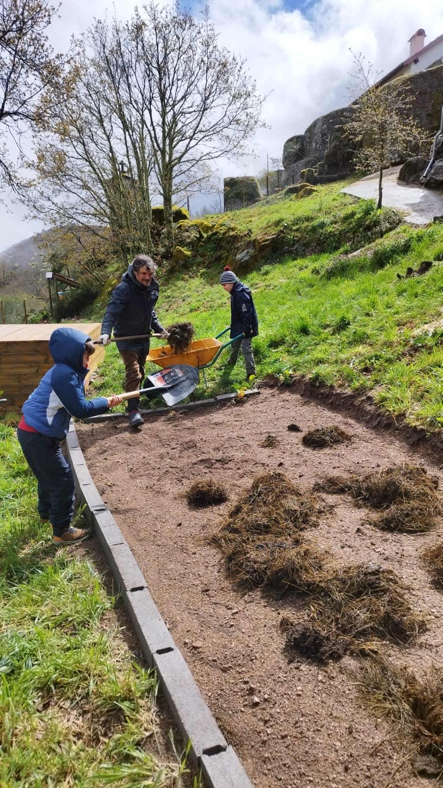 Na sexta, apesar do tempo chuvoso, atirámo-nos (com o beneplácito dos convidados) à tarefa de fertilizar a terra cavada do quintal das traseiras, tudo graças ao precioso estrume de vaca gentilmente disponibilizado pela nossa vizinha Raquelinda. Quatro carros-de-mão fumegantes que irão fazer maravilhas à terra muito empobrecida da futura horta. Nos próximos dois fins-de-semana, temos as feiras de Entrimo e Lóbios, onde esperámos encontrar muitas novidades para plantar. Há planos para vagens, cebola, alface, tomate e pepino.