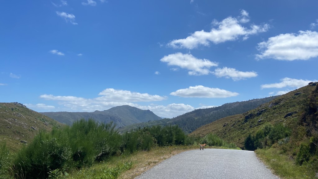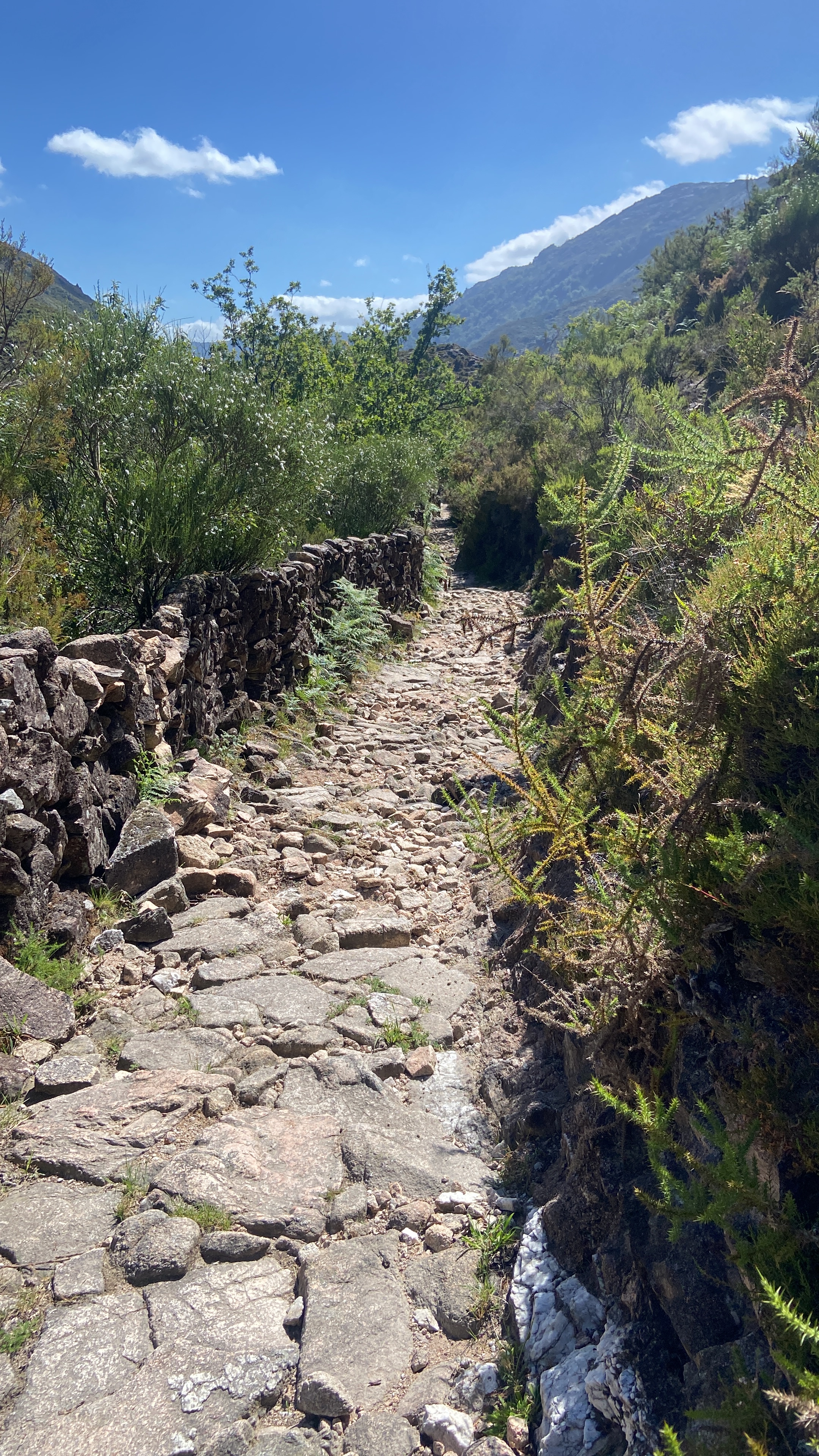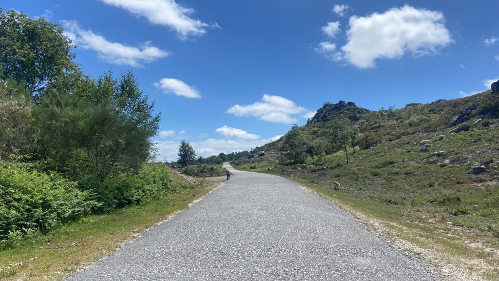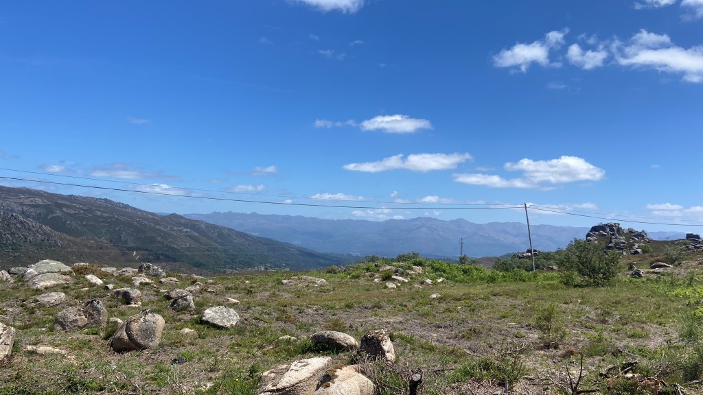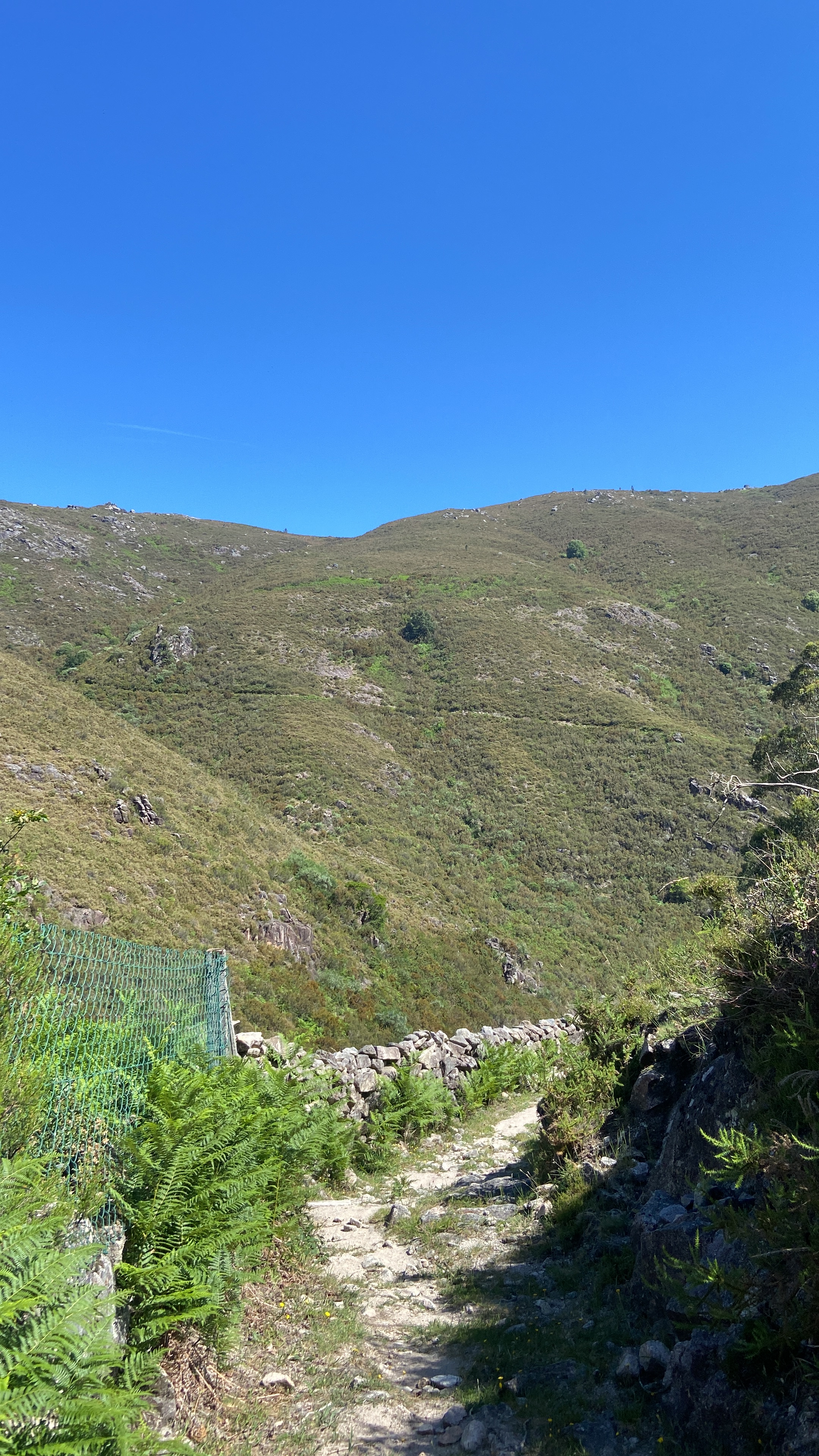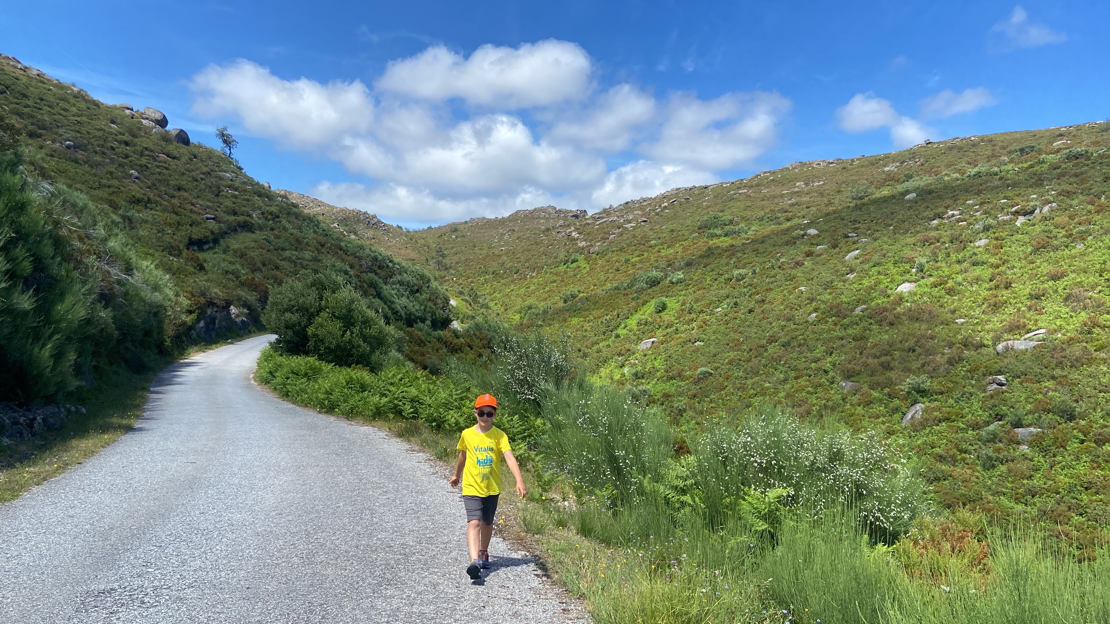 O início do percurso foi muito fácil e agradável, sempre a descer pela EM1160 da Entalada até à bela aldeia de Pousios, por onde já tínhamos passado quando fizemos, em sentido contrário, o Trilho do Curro da Velha. A partir daí, a descida continua mas o piso fica muito irregular e o caminho tem zonas com alguma vegetação alta. É então que surge em baixo o vale do Rio Laboreiro (que os galegos apodam de Barcia) e, em cima, o autêntico paredão de granito que é o Monte do Quinxo. É quando se atravessa para o lado galego em Ribeiro de Baixo que a aventura verdadeiramente começa: são mais de 3km sempre a subir até ao estradão de terra que une A Pereira à Ameijoeira. Em contrapartida, pode-se desfrutar de paisagens magníficas e de uma panorâmica única sobre todos os lugares fixos do vale ao longo da subida pela sua margem poente: é um pequeno prodígio rural feito pelo homem a tessitura de muros, caminhos e casarios que se estende pelos lugares cujos nomes parecem prometer descobertas e peripécias infindas: Ribeiro de Cima, Terços, Além, Rio de Ossos, Pousios e Ribeiro de Baixo.