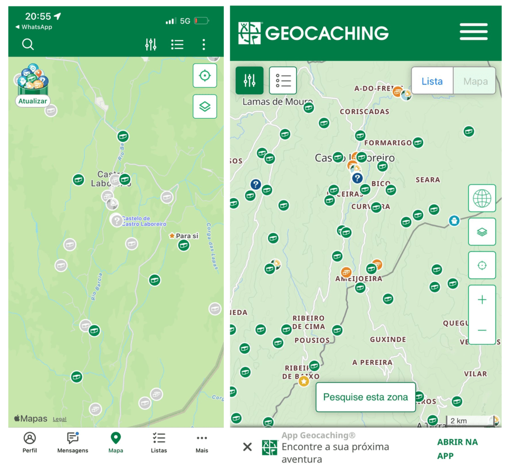 No domingo de manhã, instalámos a app no telemóvel do meu pai e descobrimos que havia centenas de geocaches em Castro Laboreiro! A mais perto ficava a 800m da nossa casa, não muito longe da ponte romana da Dorna, perto de um trilho que fazemos quase todos os fins-de-semana. Quando chegámos ao local indicado pela app, ainda demorámos uns cinco minutos a encontrar um monte de pedras atrás das quais estava a nossa muito desejada e primeira geochache. Foi uma emoção descobri-la e deixar a minha assinatura no livro de registos. Recomendo a todos a prática desta fabulosa actividade!