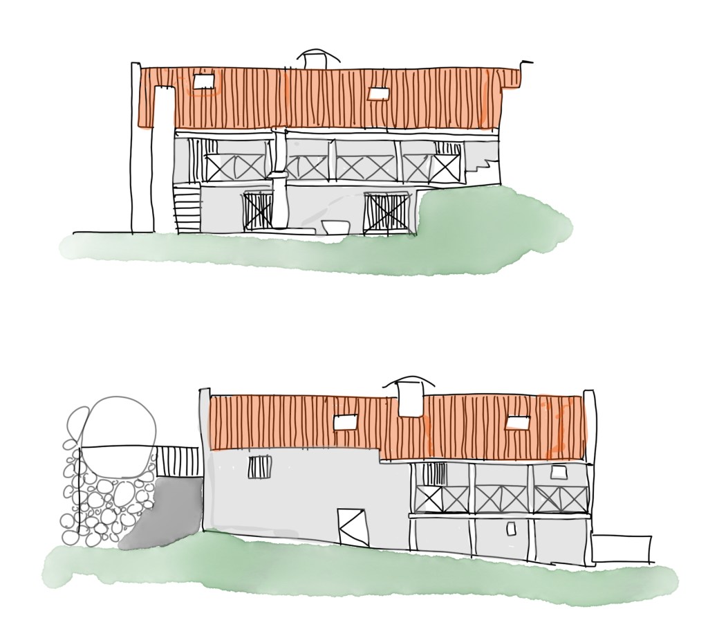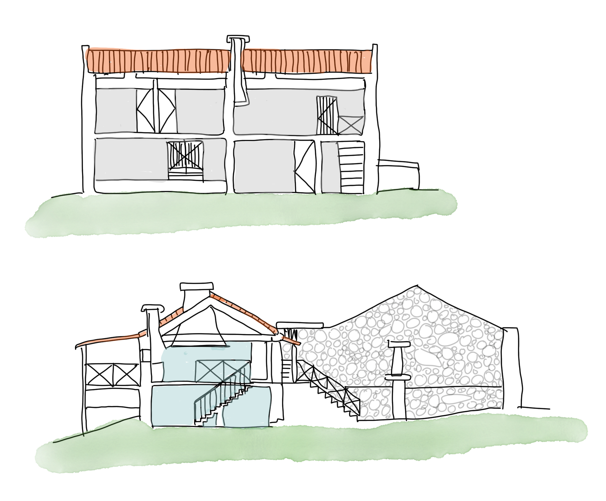 Esta semana descobri por acaso os ficheiros digitais topográficos e arquitectónicos que foram produzidos para a legalização da nossa casa na Entalada. Já não me lembrava deles e achei-os bonitos. Resolvi por isso rabiscar alguns dos planos e cortes com a iPen e acrescentar-lhes alguma cor. Deu nisto.