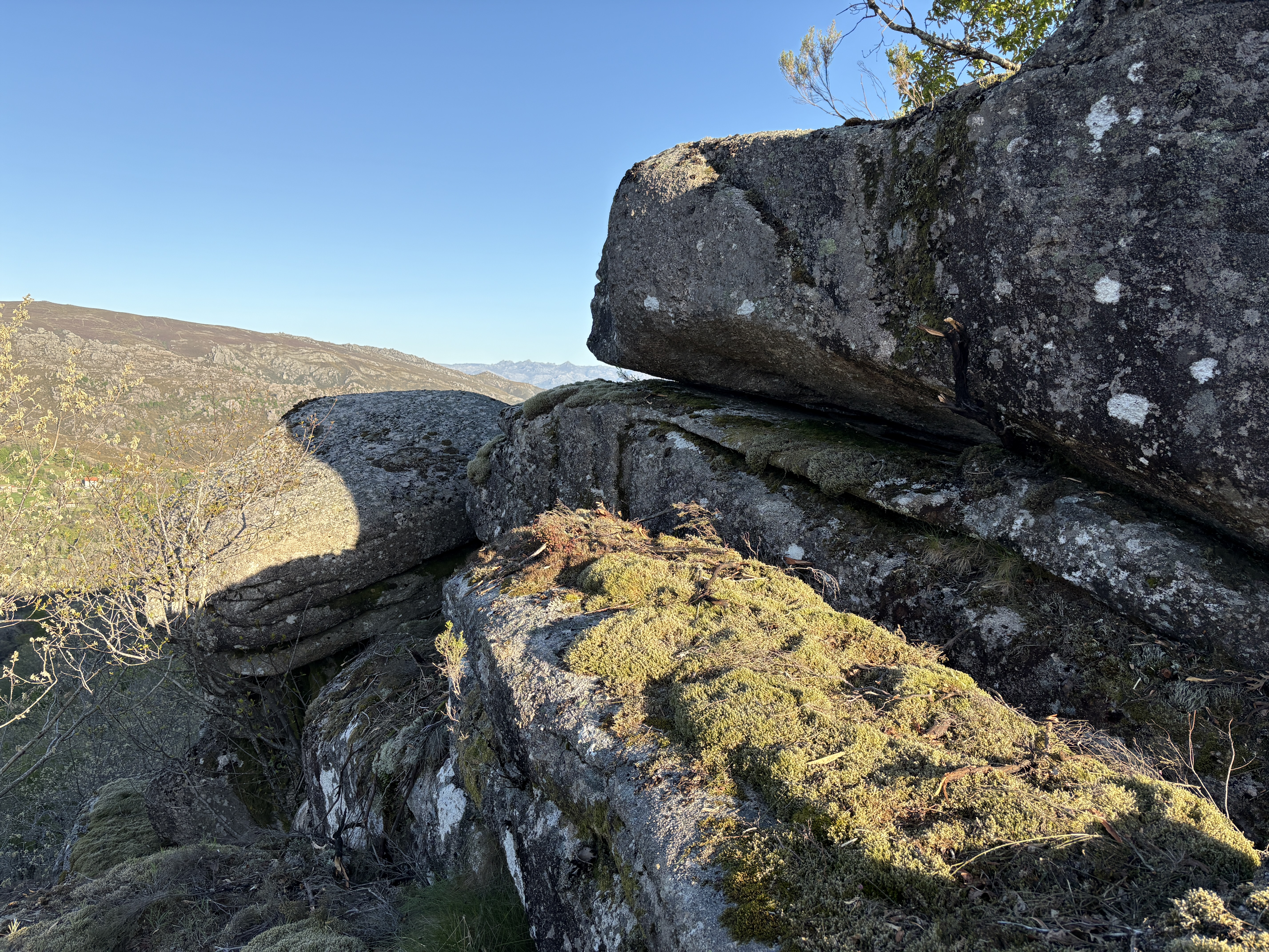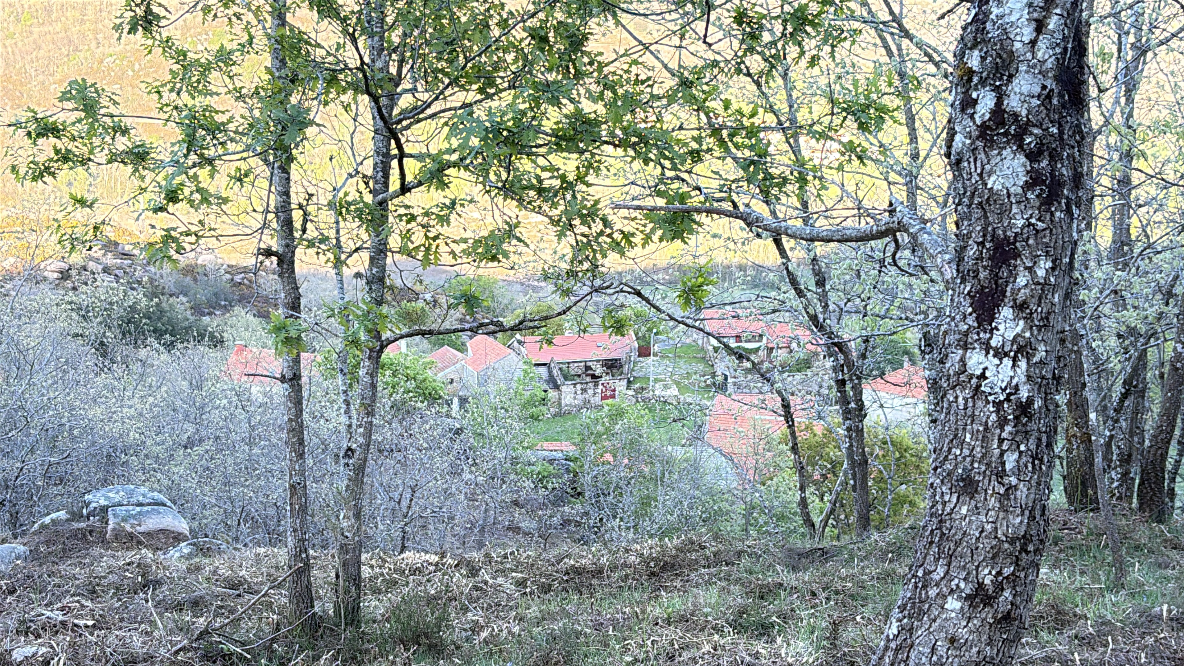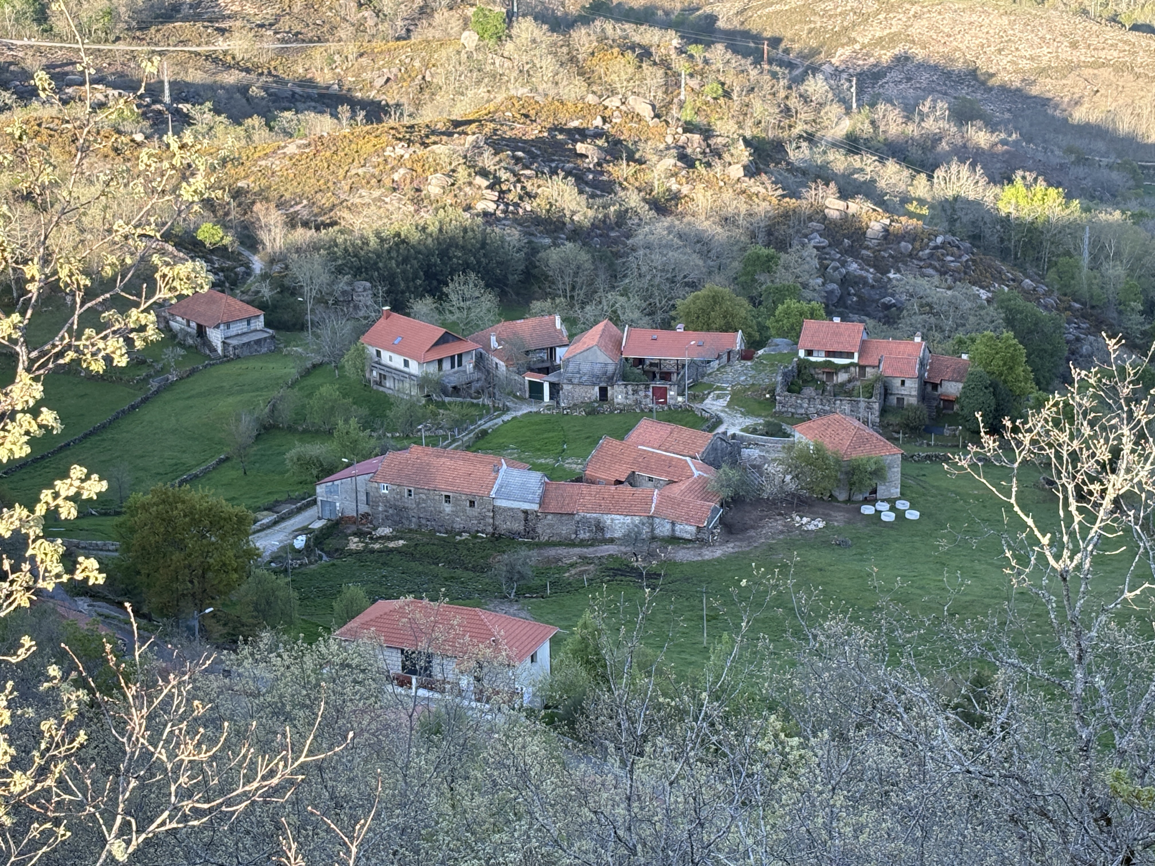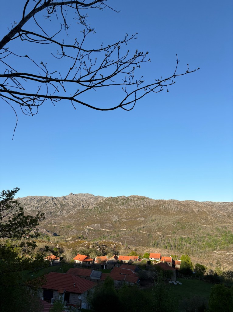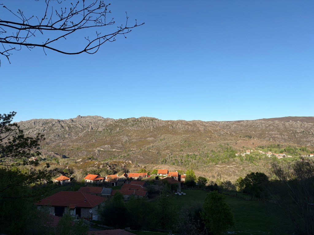 Numa semana, a temperatura subia na casa das duas dezenas de graus. Graças à limpeza das matas por uma super-eficaz equipa de sapadores indianos contratada pela CM de Melgaço, conseguimos pela primeira vez subir a encosta poente da Entalada e ter uma visão panorâmica da aldeia que nunca tínhamos visto antes. O dia estava-se a pôr-se e a temperatura voltava a cair a pique. Nesse serão, suspeito que tenhámos acendido a última lareira até ao final do Verão.