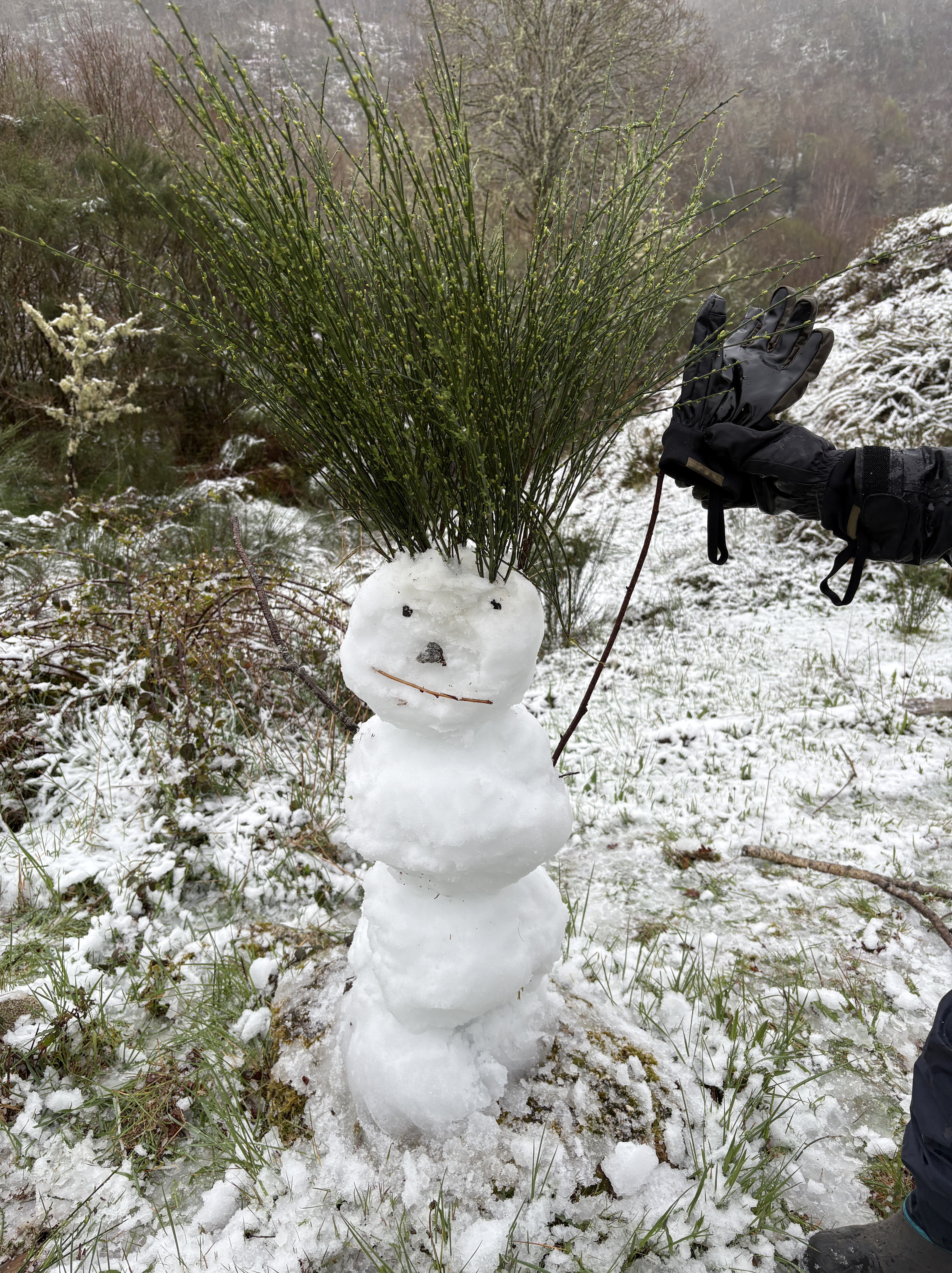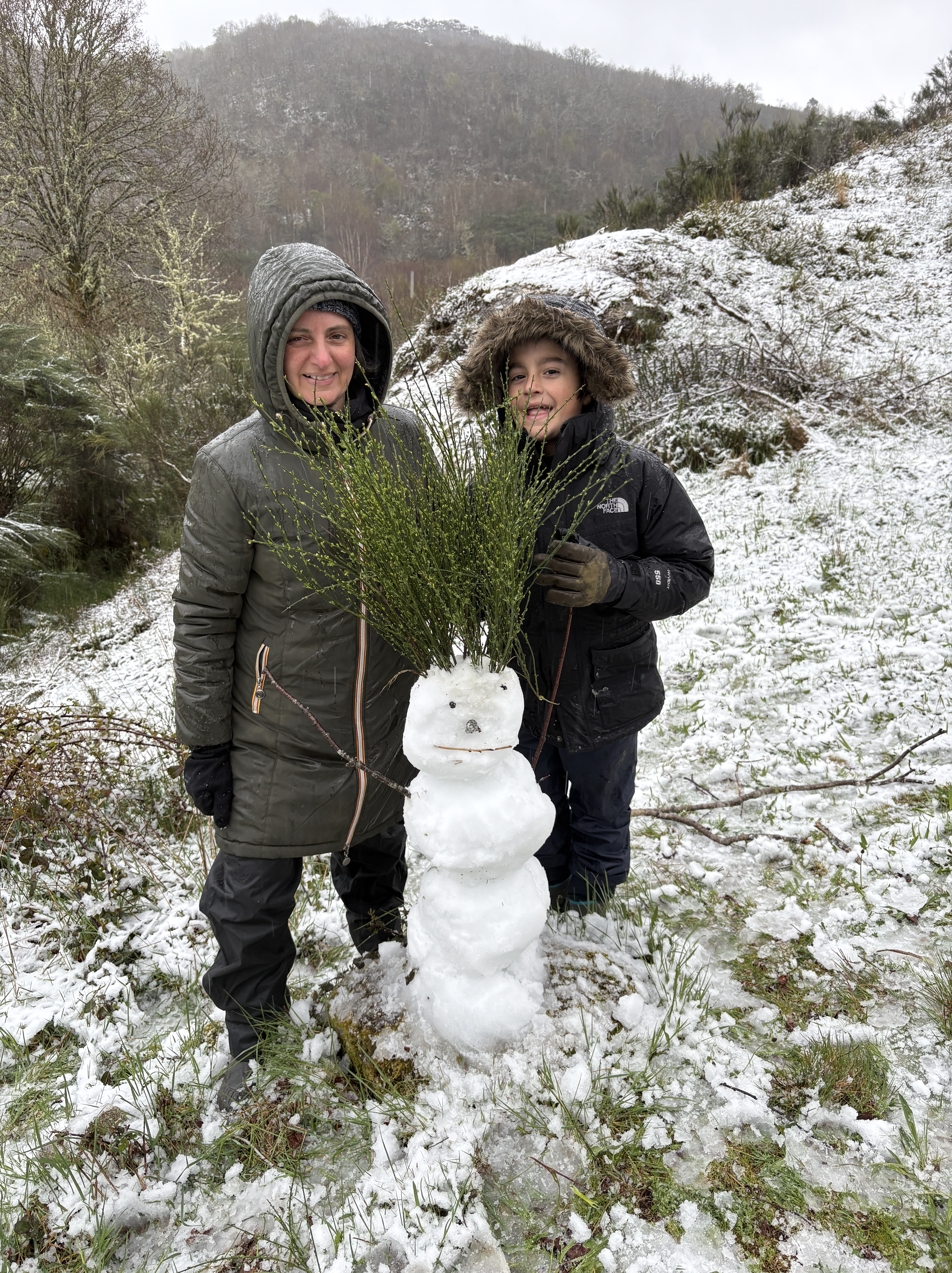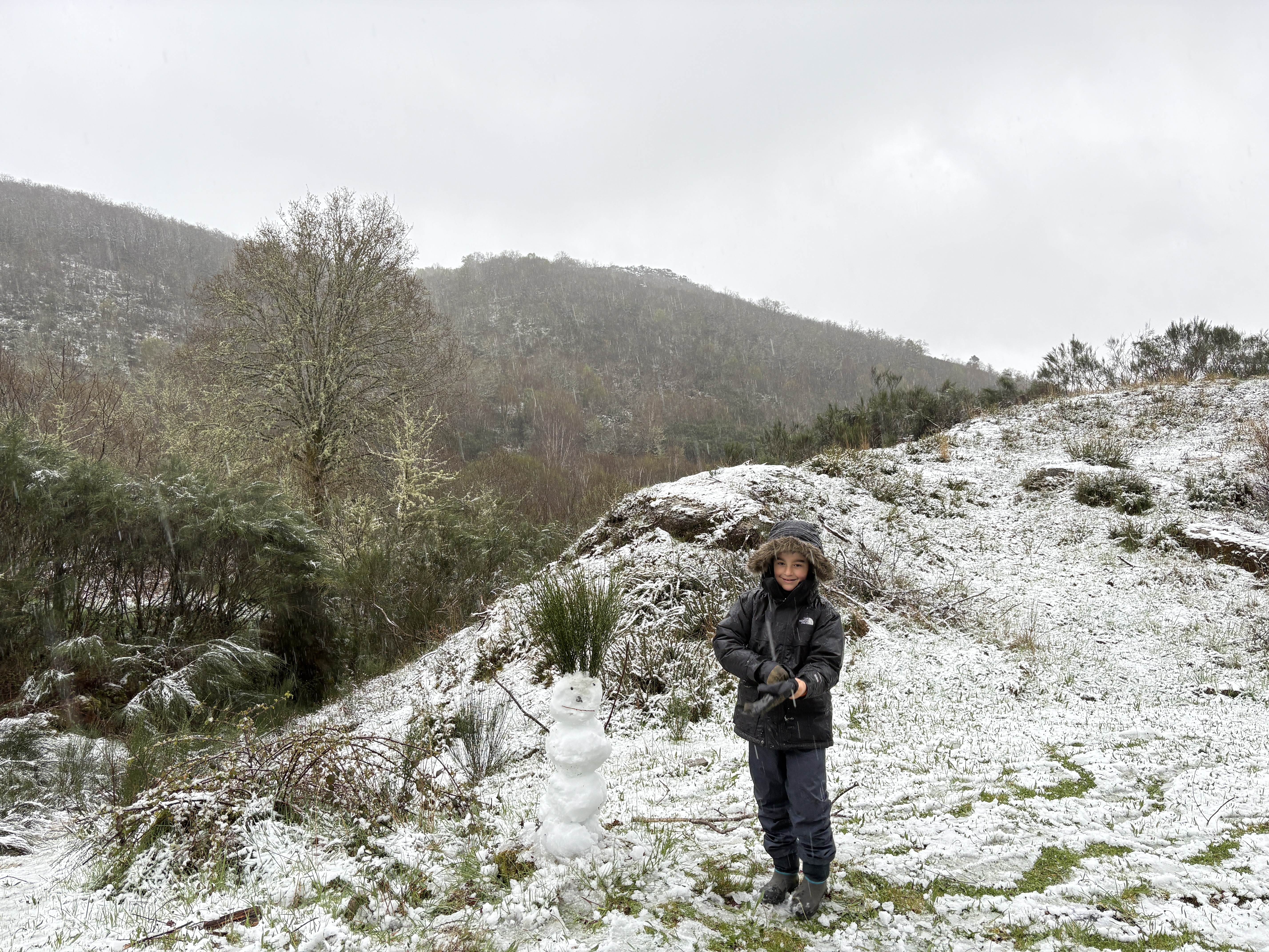 Se o ano passado tivemos nada mais nada menos do que 6 fins-de-semana com neve, este ano foi preciso esperar pela segunda metade do mês para apanharmos pela primeira vez neve na vila. Deu para fazer um boneco e travar uma batalha. Não nos queixamos. Era o Inverno a depedir-se.