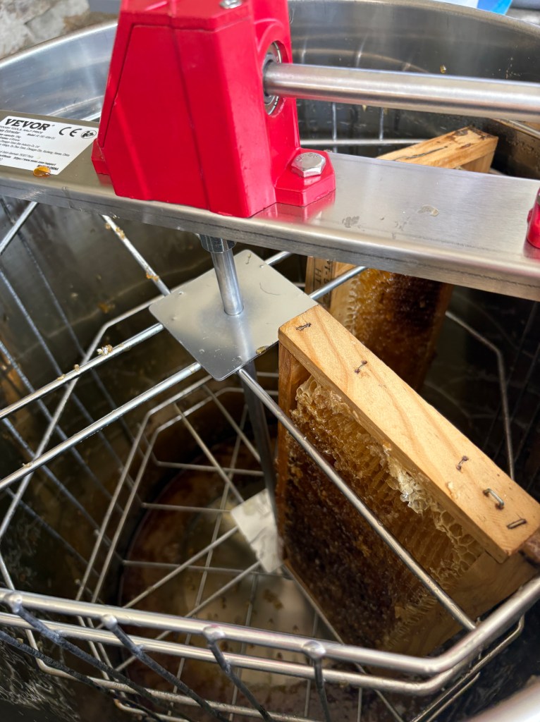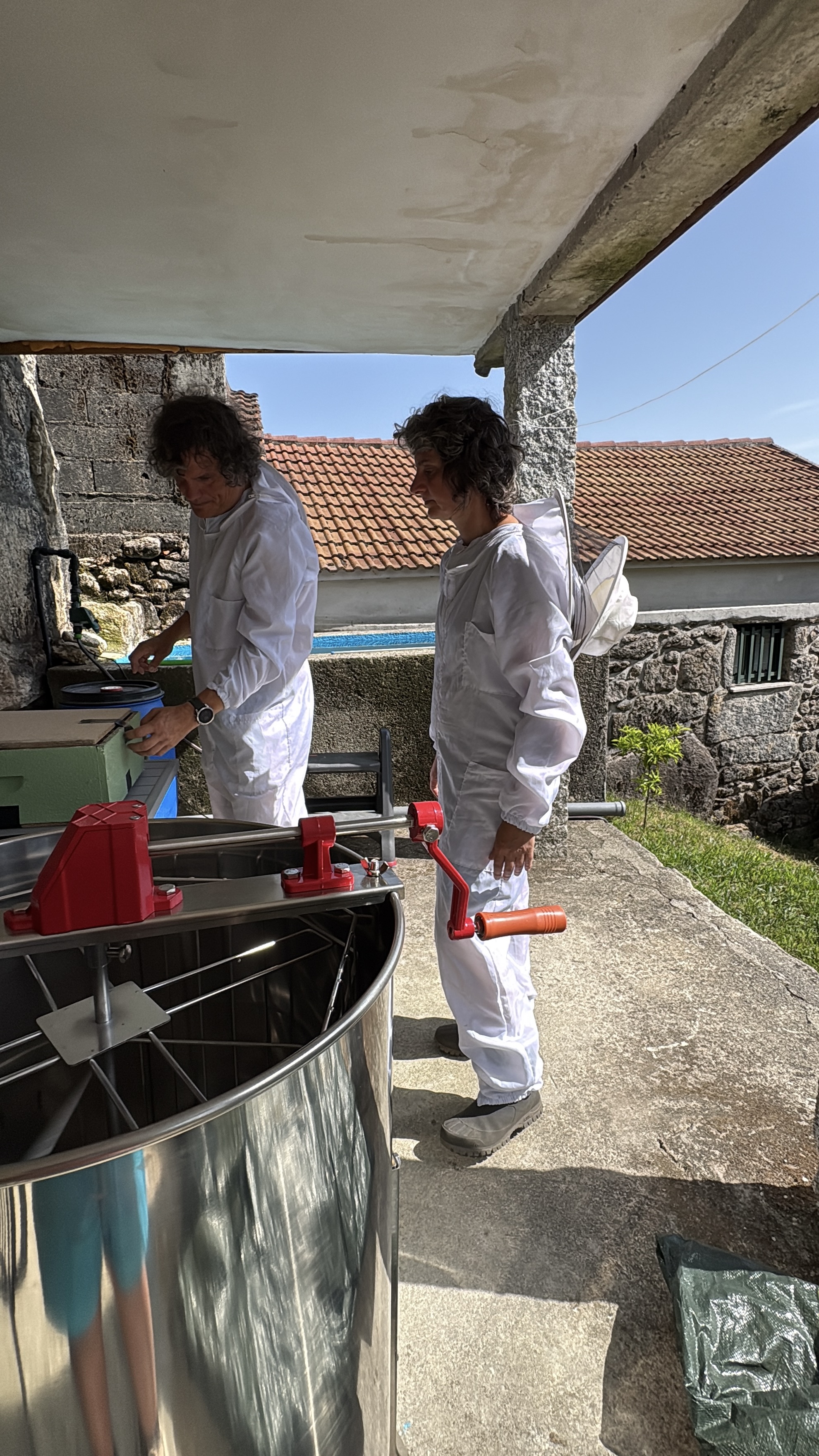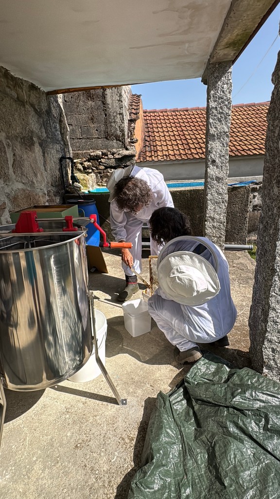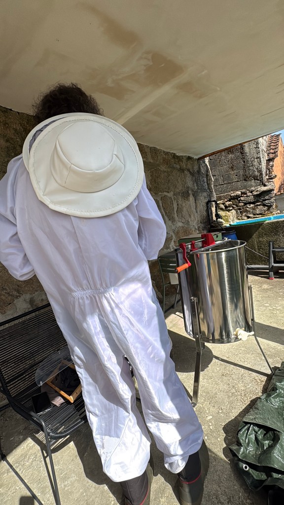 Já fizemos a nossa primeira cresta do ano! Digo primeira, porque não sabemos se vamos ter mais mel para crestar no final do verão. O que queríamos, de facto, era crestar cedo para que as abelhas do nosso enxame mais antigo ficassem com mais mel para o Inverno nas alças. E foi o que fizemos. Apesar de termos antecipado a cresta um par de meses, ainda conseguimos extrair 7kg do preciosíssimo nectar de uma única alça.